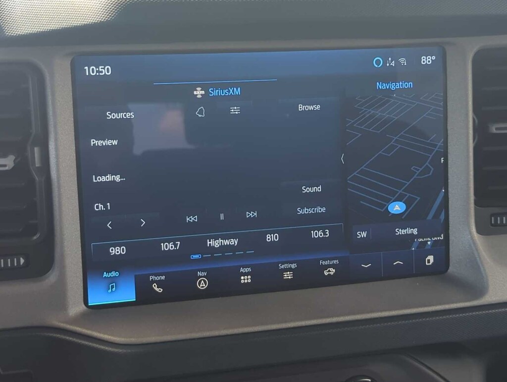 Equipment Group 314A High/Lux Package (10 Speakers w/Subwoofer, 360-Degree Camera, Adaptive Cruise Control, Additional Sound Deadening, Evasive Steering Assist, Front Parking Sensors, Heated Steering Wheel, Information on Demand Panel, Radio: B&O Sound System by Bang & Olufsen, Sideview Mirrors, Universal Garage Door Opener, and Wireless Charging Pad), 18 Bright Machined Aluminum Wheels, 3.73 Axle Ratio, Exterior Parking Camera Rear, Ford Performance Heavy-Duty Modular Front Bumper, Front Bucket Seats, Front fog lights, Fully automatic headlights, Heated front seats, Navigation system: Connected Navigation, Power passenger seat, 4-Wheel Disc Brakes, 7 Speakers, ABS brakes, Air Conditioning, Alloy wheels, AM/FM radio: SiriusXM with 360L, AM/FM Stereo, Auto High-beam Headlights, Auto-dimming Rear-View mirror, Automatic temperature control, Auxiliary Switches, Brake assist, Compass, Connected Navigation, Delay-off headlights, Driver door bin, Driver vanity mirror, Dual front impact airbags, Dual front side impact airbags, Electronic Stability Control, Emergency communication system: 911 Assist, Front anti-roll bar, Front Center Armrest, Front dual zone A/C, Front reading lights, Front wheel independent suspension, Heated door mirrors, Heated Leather-Trimmed/Vinyl Bucket Seats, Illuminated entry, Integrated roll-over protection, Leather Shift Knob, Low tire pressure warning, Occupant sensing airbag, Outside temperature display, Overhead airbag, Overhead console, Panic alarm, Passenger door bin, Passenger vanity mirror, Power door mirrors, Power driver seat, Power steering, Power windows, Radio data system, Rear seat center armrest, Remote keyless entry, Security system, SiriusXM Radio w/360L, Speed control, Split folding rear seat, Steering wheel mounted audio controls, SYNC 4, Tachometer, Telescoping steering wheel, Tilt steering wheel, Traction control, Trip computer, Variably intermittent wipers, and Voltmeter.
