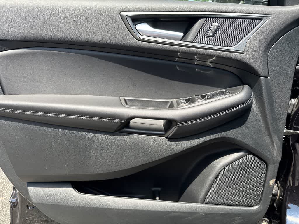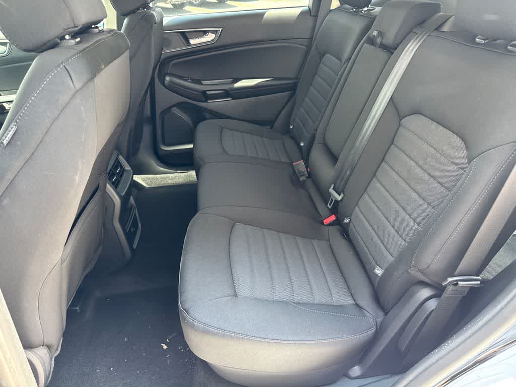 Edge SE is nicely equipped with Equipment Group 100A, AWD, 3.80 Axle Ratio, 4-Wheel Disc Brakes, 6 Speakers, ABS brakes, Air Conditioning, Alloy wheels, AM/FM radio: SiriusXM with 360L, AM/FM Stereo, Auto High-beam Headlights, Automatic temperature control, Brake assist, Bumpers: body-color, Cloth Bucket Seats, Compass, Delay-off headlights, Driver door bin, Driver vanity mirror, Dual front impact airbags, Dual front side impact airbags, Electronic Stability Control, Emergency communication system: SYNC 4 911 Assist, FordPass Connect, Four wheel independent suspension, Front & Rear Floor Liners w/Carpet Mats, Front anti-roll bar, Front Bucket Seats, Front Center Armrest w/Storage, Front dual zone A/C, Front License Plate Bracket, Front reading lights, Fully automatic headlights, Illuminated entry, Knee airbag, Low tire pressure warning, Occupant sensing airbag, Outside temperature display, Overhead airbag, Overhead console, Panic alarm, Passenger door bin, Passenger vanity mirror, Power door mirrors, Power steering, Power windows, Rear anti-roll bar, Rear reading lights, Rear seat center armrest, Rear window defroster, Rear window wiper, Remote keyless entry, SiriusXM w/360L, Speed control, Speed-Sensitive Wipers, Split folding rear seat, Spoiler, Steering wheel mounted audio controls, SYNC 4A w/Enhanced Voice Recognition, Tachometer, Telescoping steering wheel, Tilt steering wheel, Traction control, Trip computer, Variably intermittent wipers, and Wheels: 18 Sparkle Silver-Painted Aluminum.