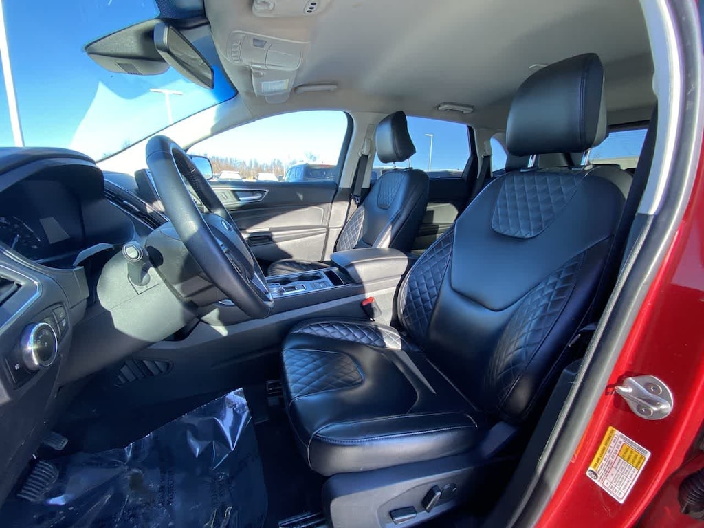 ENGINE: TWIN-SCROLL 2.0L ECOBOOST auto start-stop technology (STD). Ford Titanium with Rapid Red Metallic Tinted Clearcoat exterior and Ebony interior features a 4 Cylinder Engine with 250 HP at 5500 RPM*.