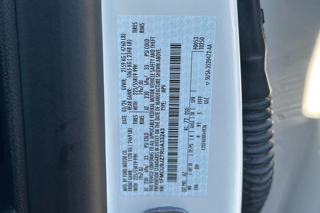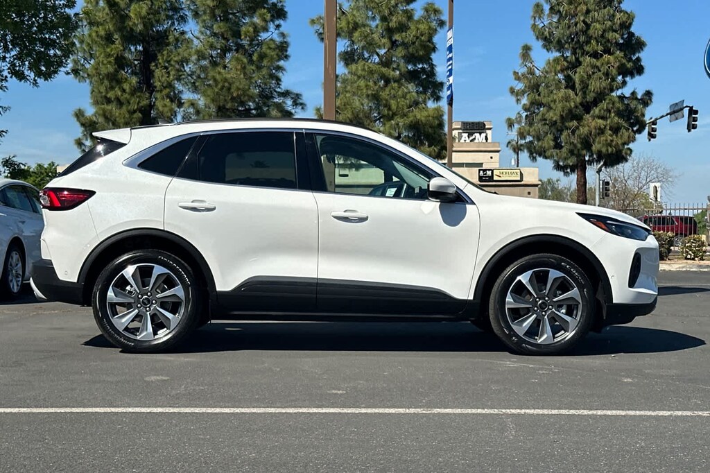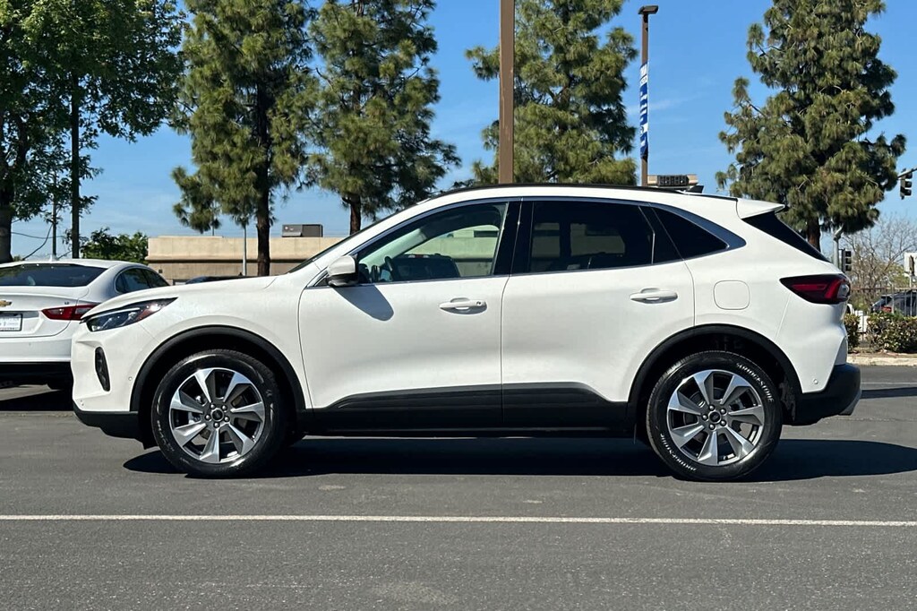 Lithia Ford and Lincoln of Fresno is pleased to offer this Star White Metallic Tri-Coat 2024 Ford Escape Hybrid Platinum for purchase, this vehicle is well equipped with many features including: Equipment Group 600A (Electronic Fuel Door Release, Neutral Towing Capability, and Pedestrian Alert Sounder), Premium Technology Package (Active Park Assist 2.0, HD Radio, Head-Up Display, Heated Leather-Trimmed Front Sport Contour Seats, and Radio: B&O Sound System by Bang & Olufsen), 2.5L iVCT, 2.91 Axle Ratio, 4-Wheel Disc Brakes, 6 Speakers, ABS brakes, Air Conditioning, Alloy wheels, AM/FM radio: SiriusXM, AM/FM Stereo, Auto High-beam Headlights, Auto-dimming Rear-View mirror, Automatic temperature control, Brake assist, Bumpers: body-color, Compass, Delay-off headlights, Driver door bin, Driver vanity mirror, Dual front impact airbags, Dual front side impact airbags, Electronic Stability Control, Emergency communication system: SYNC 4 911 Assist, Exterior Parking Camera Rear, FordPass Connect, Four wheel independent suspension, Front anti-roll bar, Front Bucket Seats, Front Center Armrest, Front dual zone A/C, Front fog lights, Front License Plate Bracket, Front reading lights, Fully automatic headlights, Garage door transmitter, Heated ActiveX Trimmed Front Sport Contour Bucket Seats, Heated door mirrors, Heated front seats, Heated steering wheel, Illuminated entry, Knee airbag, Low tire pressure warning, Memory seat, Navigation system: Connected Navigation, Occupant sensing airbag, Outside temperature display, Overhead airbag, Overhead console, Panic alarm, Passenger door bin, Passenger vanity mirror, Power door mirrors, Power driver seat, Power Liftgate, Power passenger seat, Power steering, Power windows, Radio data system, Rain sensing wipers, Rear anti-roll bar, Rear reading lights, Rear seat center armrest, Rear window defroster, Rear window wiper, Remote keyless entry, Roof rack: rails only, Security system, Speed control, Speed-sensing steering, Speed-Sensitive Wipers, Split folding rear seat, Spoiler, Steering wheel mounted audio controls, SYNC 4 w/Enhanced Voice Recognition, Tachometer, Telescoping steering wheel, Tilt steering wheel, Traction control, Trip computer, Variably intermittent wipers, and Wheels: 19 Machined-Face Aluminum. AWD 2.5L iVCT eCVT Platinum
