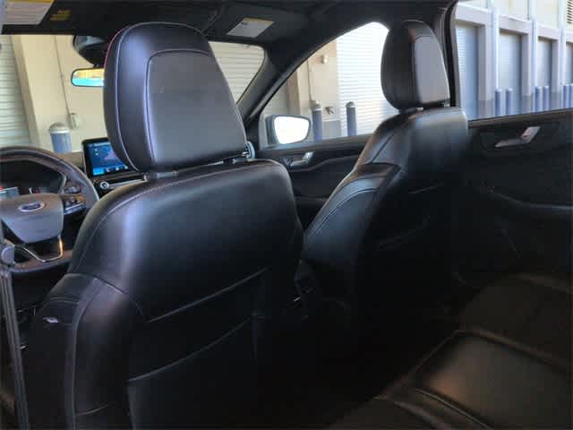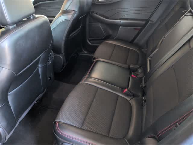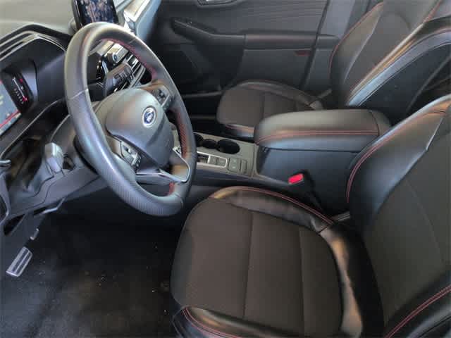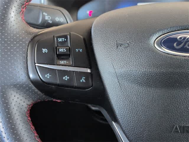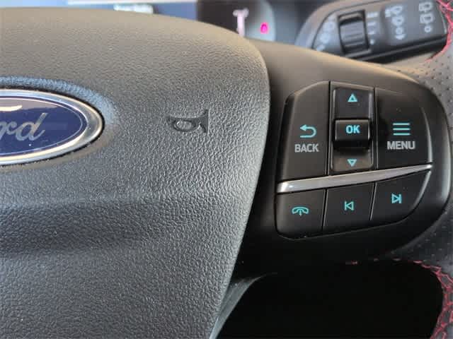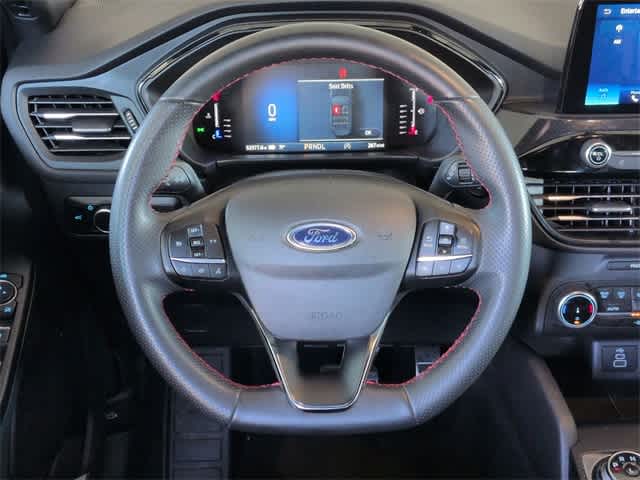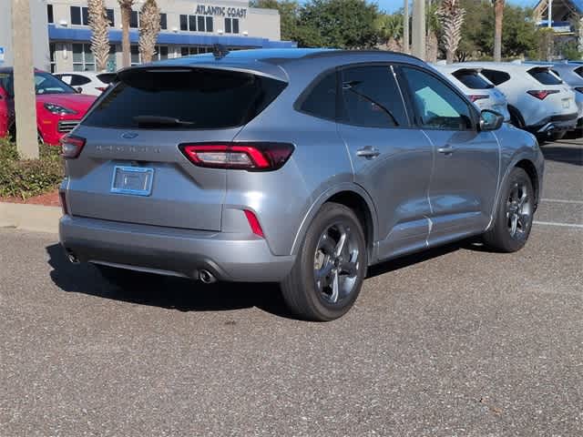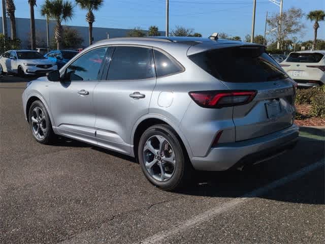 This 2024 Ford Escape ST-Line in Silver Metallic, features Equipment Group 300A, 3.81 Axle Ratio, 4-Wheel Disc Brakes, 6 Speakers, ABS brakes, Air Conditioning, Alloy wheels, AM/FM radio: SiriusXM, AM/FM Stereo, Auto High-beam Headlights, Automatic temperature control, Brake assist, Bumpers: body-color, Compass, Delay-off headlights, Driver door bin, Driver vanity mirror, Dual front impact airbags, Dual front side impact airbags, Electronic Stability Control, Emergency communication system: SYNC 4 911 Assist, Exterior Parking Camera Rear, FordPass Connect, Four wheel independent suspension, Front anti-roll bar, Front Bucket Seats, Front Center Armrest, Front dual zone A/C, Front reading lights, Fully automatic headlights, Illuminated entry, Knee airbag, Low tire pressure warning, Occupant sensing airbag, Outside temperature display, Overhead airbag, Overhead console, Panic alarm, Passenger door bin, Passenger vanity mirror, Power door mirrors, Power driver seat, Power Liftgate, Power steering, Power windows, Radio data system, Rear anti-roll bar, Rear reading lights, Rear seat center armrest, Rear window defroster, Rear window wiper, Remote keyless entry, Roof rack: rails only, Speed control, Speed-sensing steering, Speed-Sensitive Wipers, Split folding rear seat, Spoiler, Sport steering wheel, Steering wheel mounted audio controls, SYNC 4, Tachometer, Telescoping steering wheel, Tilt steering wheel, Traction control, Trip computer, Variably intermittent wipers, Vinyl/Cloth Front Sport Contour Bucket Seats, and Wheels: 18 Rock Metallic Painted Aluminum: