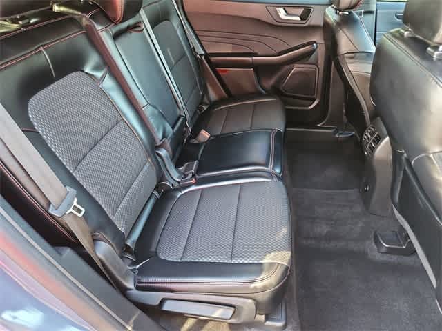 Our sporty No Accidents Reported, Miles Below Market Average 2024 Ford Escape ST-Line AWD with Tech Pack #1 can turn heads as it takes on your days in Vapor Blue Metallic! Powered by a TurboCharged 1.5 Liter EcoBoost 3 Cylinder providing 180hp to an 8 Speed Automatic transmission for energetic everyday capability. Agile and versatile, this All Wheel Drive SUV also scores nearly 32mpg on the highway with responsive handling for urban adventures. For an athletic impression, our Escape rides with LED signature lighting, a power liftgate, chrome-tipped exhaust outlets, alloy wheels, and ST-Line upgrades like a black mesh grille, a large rear spoiler, an exclusive rear skid plate, and black roof rails.