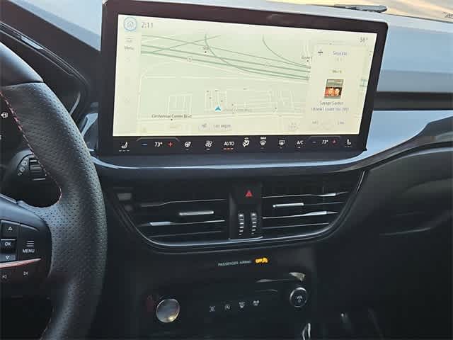 More dynamic details await in our ST-Line cabin, treating you to heated sport contour front seats with red stitching, eight-way power for the driver, a heated flat-bottom sport steering wheel, dual-zone automatic climate control, remote start, and keyless access/ignition. Digital advantages of this comfortable cockpit include Tech Pack #1, which adds a 13.2-inch touchscreen and connected navigation to an 8-inch driver display, WiFi compatibility, voice control, wireless smartphone connectivity, and six-speaker audio.
