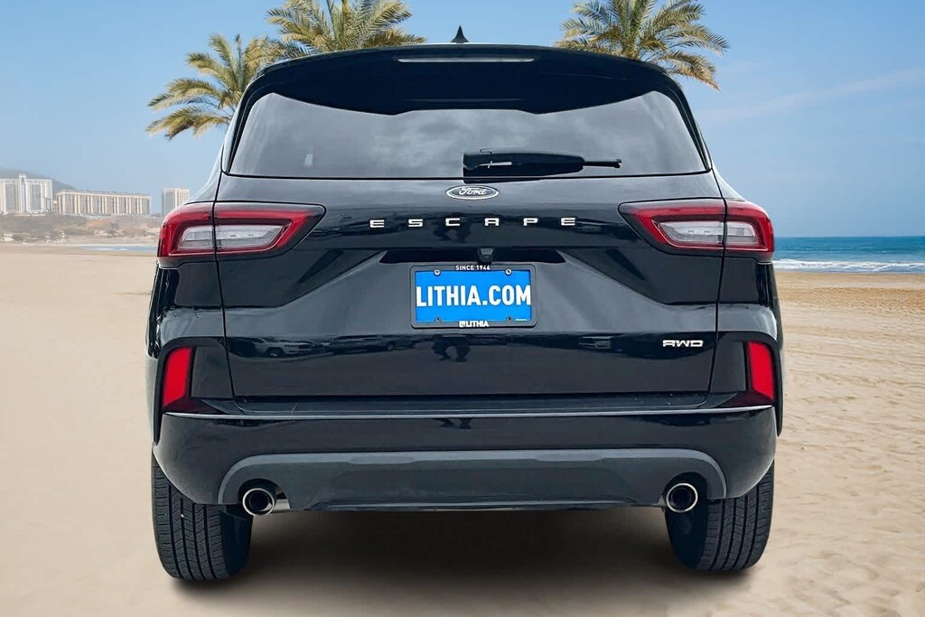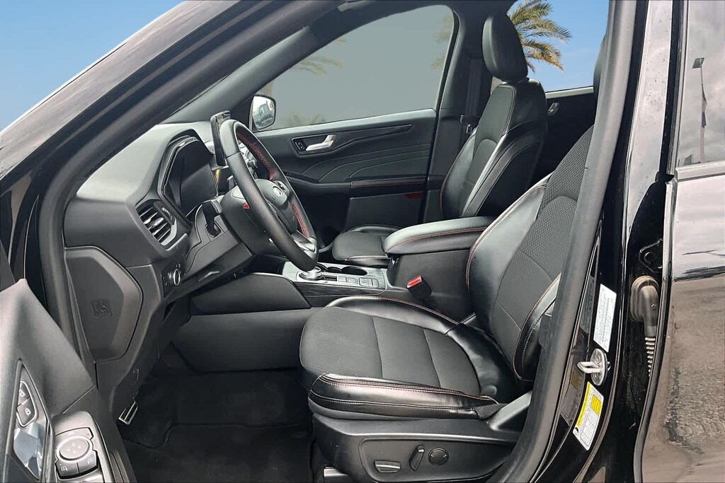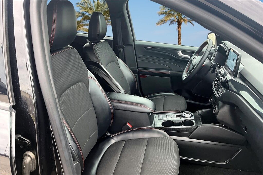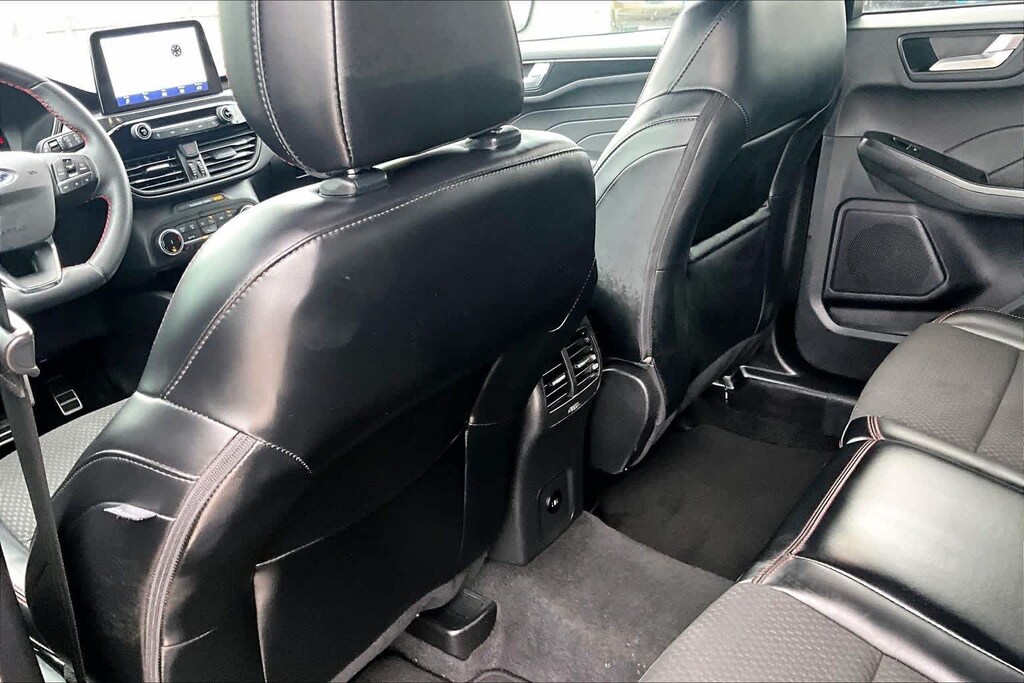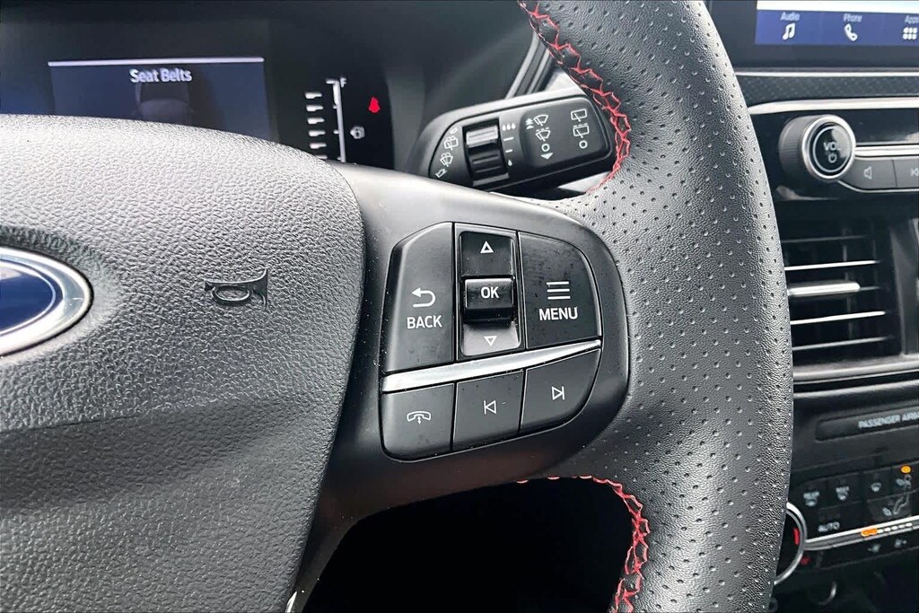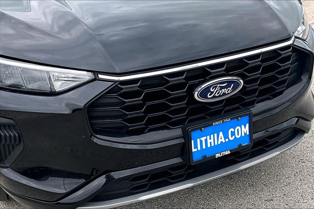 FRESH OIL CHANGE, AWD, 3.81 Axle Ratio, 4-Wheel Disc Brakes, 6 Speakers, ABS brakes, Air Conditioning, Alloy wheels, AM/FM radio: SiriusXM, AM/FM Stereo, Auto High-beam Headlights, Automatic temperature control, Brake assist, Bumpers: body-color, Cold Weather Package, Compass, Delay-off headlights, Driver door bin, Driver vanity mirror, Dual front impact airbags, Dual front side impact airbags, Electronic Stability Control, Emergency communication system: SYNC 4 911 Assist, Equipment Group 300A, Exterior Parking Camera Rear, FordPass Connect, Four wheel independent suspension, Front anti-roll bar, Front Bucket Seats, Front Center Armrest, Front dual zone A/C, Front License Plate Bracket, Front reading lights, Fully automatic headlights, Heated Front Row Seats, Heated Sideview Mirrors, Heated Steering Wheel, Illuminated entry, Knee airbag, Low tire pressure warning, Occupant sensing airbag, Outside temperature display, Overhead airbag, Overhead console, Panic alarm, Passenger door bin, Passenger vanity mirror, Power door mirrors, Power driver seat, Power Liftgate, Power steering, Power windows, Radio data system, Rear anti-roll bar, Rear reading lights, Rear seat center armrest, Rear window defroster, Rear window wiper, Remote keyless entry, Remote Starter System, Roof rack: rails only, Speed control, Speed-sensing steering, Speed-Sensitive Wipers, Split folding rear seat, Spoiler, Sport steering wheel, Steering wheel mounted audio controls, SYNC 4, Tachometer, Telescoping steering wheel, Tilt steering wheel, Traction control, Trip computer, Variably intermittent wipers, Vinyl/Cloth Front Sport Contour Bucket Seats, Wheels: 18 Rock Metallic Painted Aluminum, AWD. 26/32 City/Highway MPG Black Metallic 2024 Ford Escape ST-Line AWD 8-Speed Automatic 1.5L EcoBoost