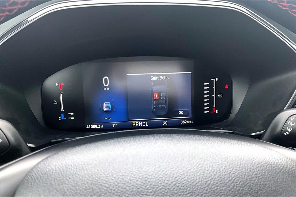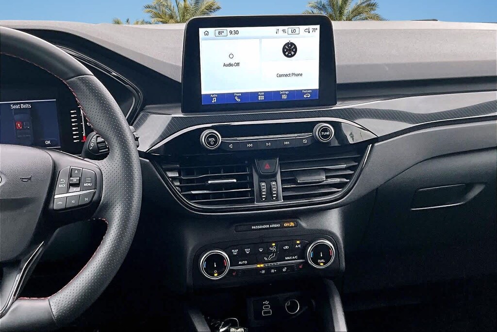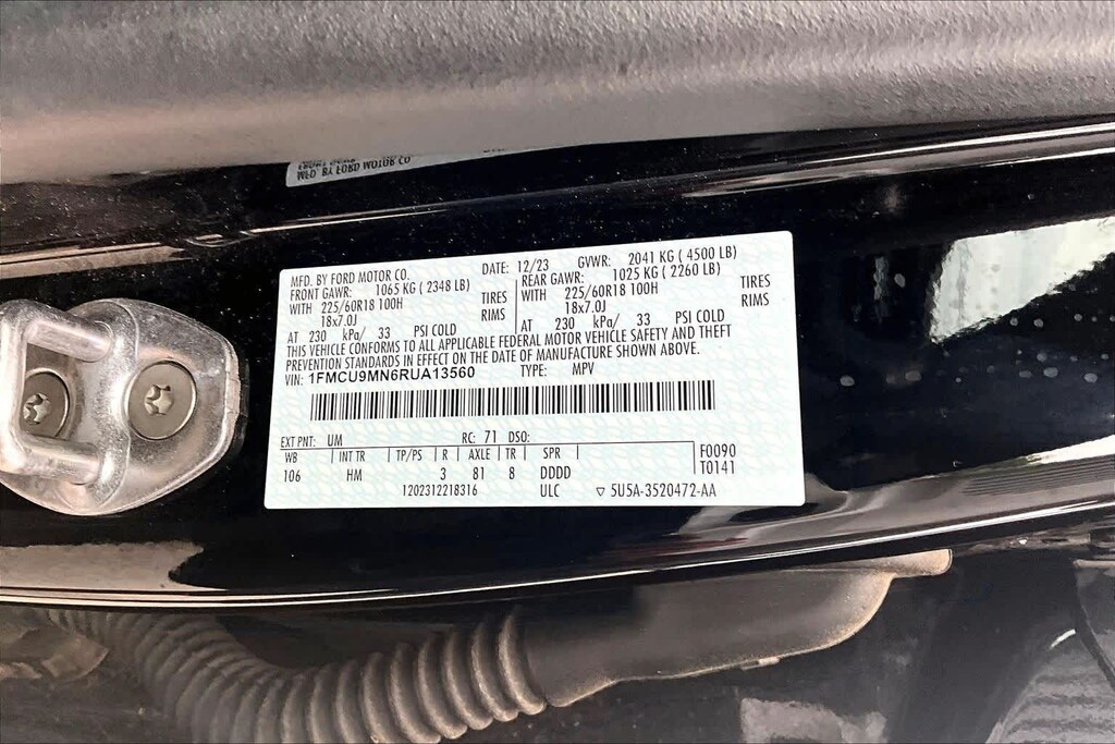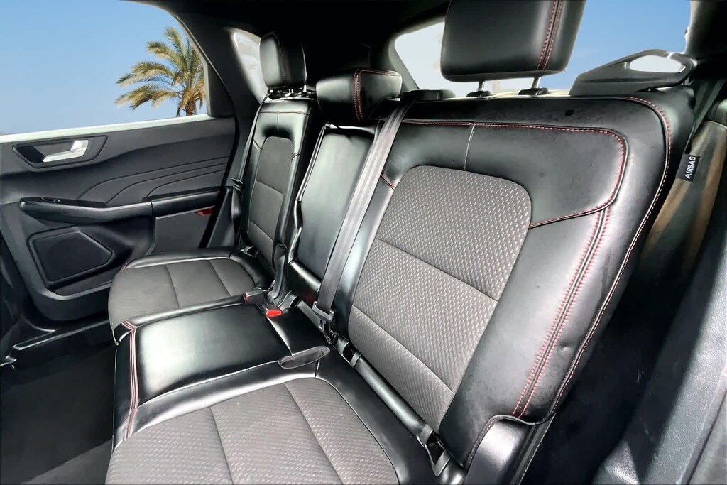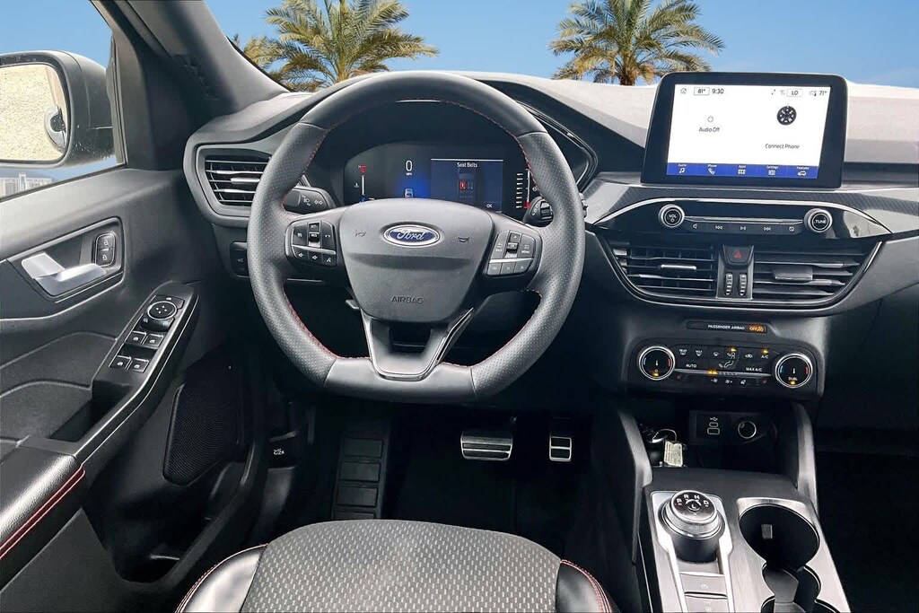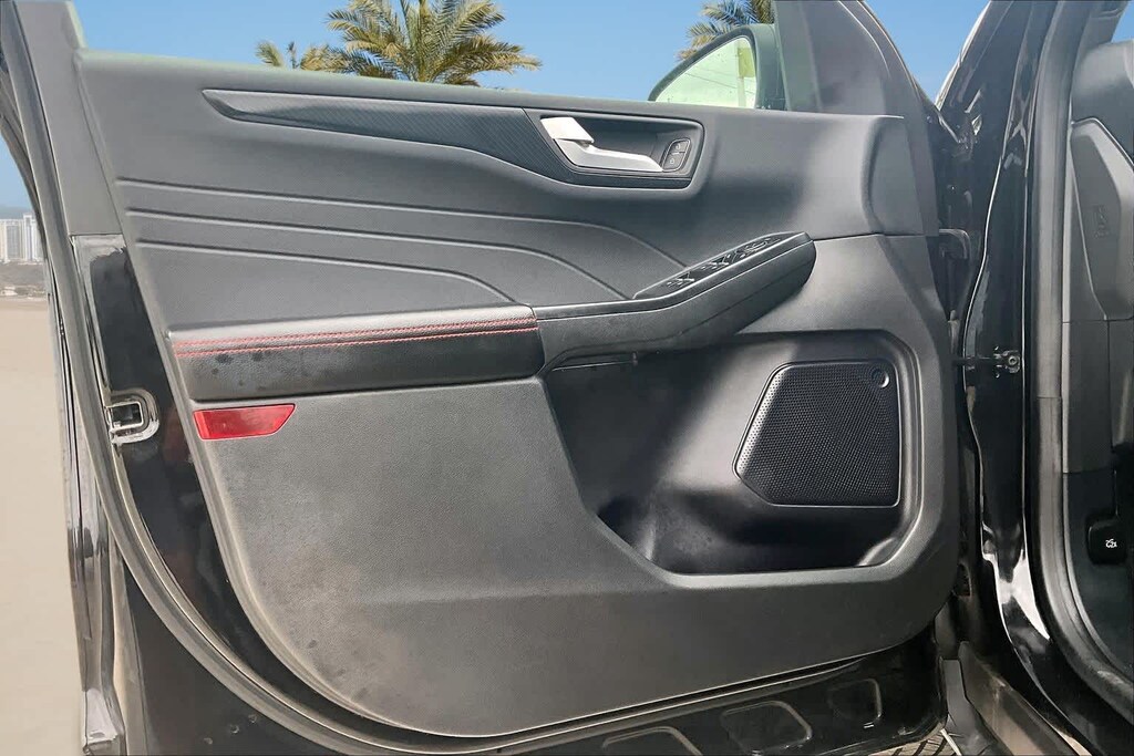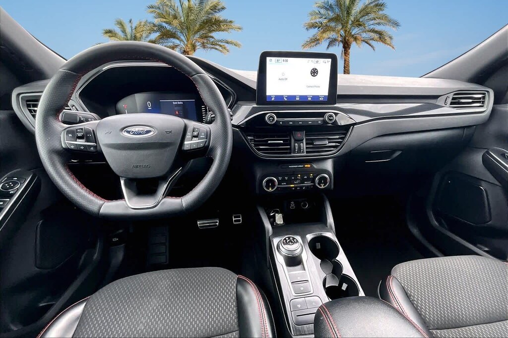 FRESH OIL CHANGE, AWD, 3.81 Axle Ratio, 4-Wheel Disc Brakes, 6 Speakers, ABS brakes, Air Conditioning, Alloy wheels, AM/FM radio: SiriusXM, AM/FM Stereo, Auto High-beam Headlights, Automatic temperature control, Brake assist, Bumpers: body-color, Cold Weather Package, Compass, Delay-off headlights, Driver door bin, Driver vanity mirror, Dual front impact airbags, Dual front side impact airbags, Electronic Stability Control, Emergency communication system: SYNC 4 911 Assist, Equipment Group 300A, Exterior Parking Camera Rear, FordPass Connect, Four wheel independent suspension, Front anti-roll bar, Front Bucket Seats, Front Center Armrest, Front dual zone A/C, Front License Plate Bracket, Front reading lights, Fully automatic headlights, Heated Front Row Seats, Heated Sideview Mirrors, Heated Steering Wheel, Illuminated entry, Knee airbag, Low tire pressure warning, Occupant sensing airbag, Outside temperature display, Overhead airbag, Overhead console, Panic alarm, Passenger door bin, Passenger vanity mirror, Power door mirrors, Power driver seat, Power Liftgate, Power steering, Power windows, Radio data system, Rear anti-roll bar, Rear reading lights, Rear seat center armrest, Rear window defroster, Rear window wiper, Remote keyless entry, Remote Starter System, Roof rack: rails only, Speed control, Speed-sensing steering, Speed-Sensitive Wipers, Split folding rear seat, Spoiler, Sport steering wheel, Steering wheel mounted audio controls, SYNC 4, Tachometer, Telescoping steering wheel, Tilt steering wheel, Traction control, Trip computer, Variably intermittent wipers, Vinyl/Cloth Front Sport Contour Bucket Seats, Wheels: 18 Rock Metallic Painted Aluminum, AWD. 26/32 City/Highway MPG Black Metallic 2024 Ford Escape ST-Line AWD 8-Speed Automatic 1.5L EcoBoost