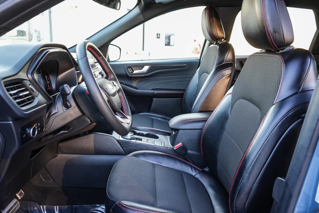 All Wheel Drive, Power Liftgate, Heated Driver Seat, Back-Up Camera, Satellite Radio, iPod/MP3 Input, Onboard Communications System, Aluminum Wheels, Remote Engine Start, Dual Zone A/C, Smart Device Integration, Cross-Traffic Alert, WiFi Hotspot, Apple CarPlay®, Brake Actuated Limited Slip Differential. Rear Spoiler, MP3 Player, Remote Trunk Release, Keyless Entry, Privacy Glass. Ford ST-Line with Vapor Blue exterior and Ebony w/Red Stitching interior features a 3 Cylinder Engine with 180 HP at 6000 RPM*.