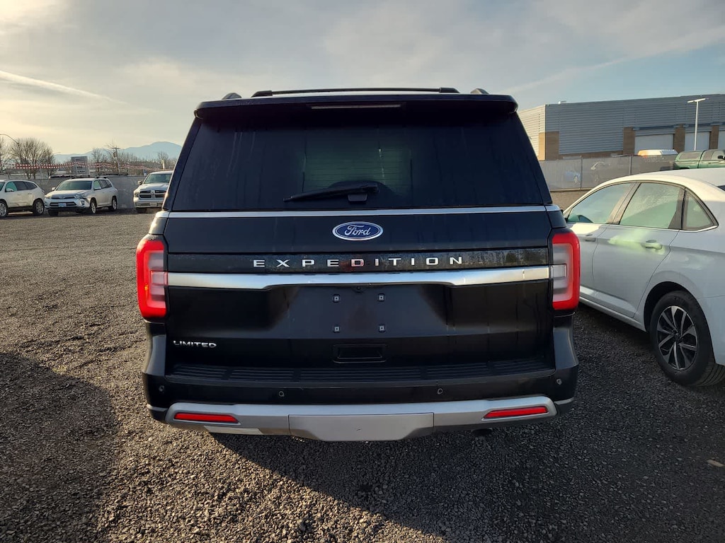 EQUIPMENT GROUP 302A HIGH PACKAGE Wheels: 22 12-Spoke Polished Aluminum, Ebony Black Mesh Grille, bright chrome bars and chrome inserts, Power-Folding Sideview Mirrors w/Autofold, power and heated glass, turn signal indicators, security approach lamps, driver/passenger side memory and body-color caps, Ford Co-Pilot360 Assist 2.0, Connected Navigation, 1 year of connectivity, pinch-to-zoom capability, live traffic, predictive destinations and route guidance, Reverse Brake Assist, 360-Degree Camera w/Split View, front/rear washer, Magnetic-Painted Power Deployable Running Boards, polished stainless accent, Panoramic Vista Roof, power open/close w/power shade, Heavy-Duty Independent Suspension, Tires: P285/45R22 110H AS BSW, 2ND ROW POWER-FOLDING 40/20/40 LEATHER BENCH SEAT 8-passenger seating, tip-and-slide feature, ADVANCED CARGO MANAGER black roof-rail crossbars, TRANSMISSION: 10-SPEED AUTOMATIC W/SELECTSHIFT (STD). Ford Limited with Agate Black exterior and Mahogany interior features a V6 Cylinder Engine with 400 HP at 5000 RPM*.