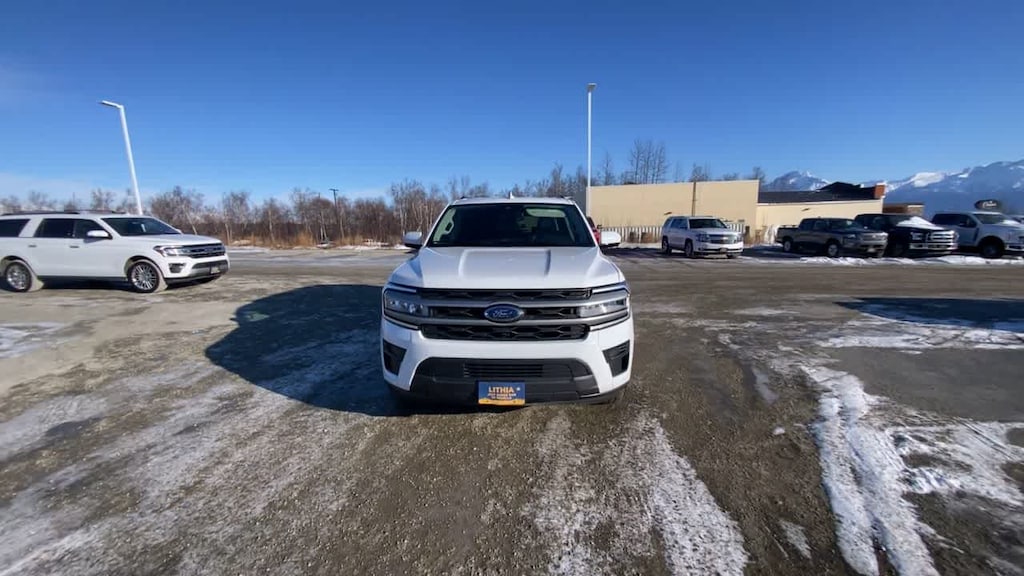 EQUIPMENT GROUP 202A HIGH PACKAGE Wireless Charging Pad, Located in media hub, Power Liftgate, 2nd Row Power-Folding Captains Chairs, armrests and tip-and-slide, Accent Color Painted Rear Bumper, Heated Steering Wheel, Heated/Ventilated Front Seats, 110V/150W AC Power Outlet, Power-Folding Sideview Mirrors w/Autofold, power and heated glass, turn signal indicators, security approach lamps, driver/passenger side memory, drivers side auto-dimming and body-color caps, 3rd Row Vinyl Power-Folding Head Restraints, power recline, 4-Door Intelligent Access (Lock/Unlock), Power-Adjustable Pedals w/Memory, SecuriCode Keyless Entry Keypad, Power Tilt/Telescopic Steering Wheel w/Memory, Ambient Lighting, Remote Start, Advanced Security Pack, SecuriLock Passive Anti-Theft System (PATS) and, 2ND ROW POWER-FOLDING 40/20/40 ACTIVEX BENCH SEAT 8-passenger seating, tip-and-slide feature, TRANSMISSION: 10-SPEED AUTOMATIC W/SELECTSHIFT (STD). Ford XLT with Oxford White exterior and Black Onyx interior features a V6 Cylinder Engine with 380 HP at 5000 RPM*.
