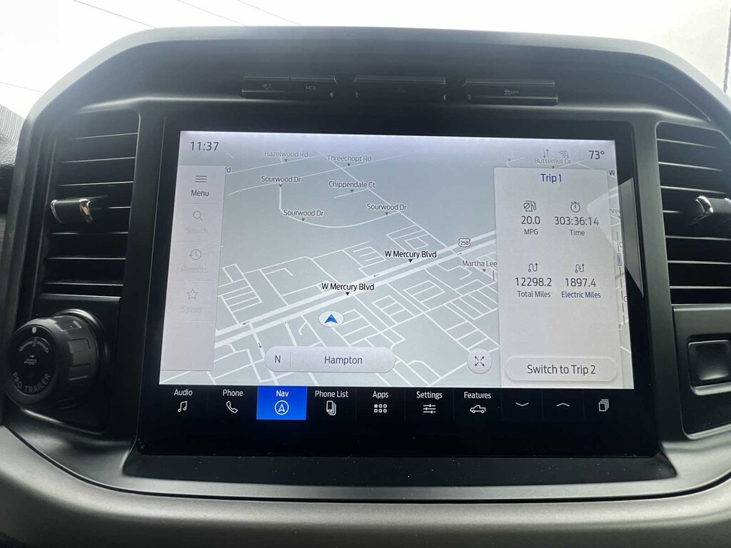 F-150 XLT is nicely equipped with Equipment Group 301A Standard, Mobile Office Package (Cloth 40/Console/40 Front Seats, Console Worksurface, and Partitioned Lockable Rear Storage), F-150 XLT, 4D SuperCrew, 3.5L PowerBoost Full-Hybrid V6, 10-Speed Automatic, 4WD, Black Metallic, Black W/Medium Dark Slate Cloth, Navigation system: Connected Navigation, 4-Wheel Disc Brakes, 6 Speakers, ABS brakes, Air Conditioning, Alloy wheels, AM/FM radio: SiriusXM with 360L, Auto High-beam Headlights, Auto-dimming Rear-View mirror, Automatic temperature control, Brake assist, Bumpers: chrome, Chrome wheels, Cloth 40/20/40 Front Seat, Compass, Delay-off headlights, Driver door bin, Driver vanity mirror, Dual front impact airbags, Dual front side impact airbags, Electronic Locking w/3.73 Axle Ratio, Electronic Stability Control, Emergency communication system: SYNC 4 911 Assist, Front anti-roll bar, Front Center Armrest w/Storage, Front dual zone A/C, Front fog lights, Front License Plate Bracket, Front reading lights, Front wheel independent suspension, Fully automatic headlights, Heated door mirrors, Illuminated entry, Low tire pressure warning, Occupant sensing airbag, Outside temperature display, Overhead airbag, Overhead console, Panic alarm, Passenger door bin, Passenger vanity mirror, Power door mirrors, Power driver seat, Power steering, Power windows, Radio data system, Radio: AM/FM SiriusXM w/360L, Rear reading lights, Rear step bumper, Rear window defroster, Remote keyless entry, Security system, Speed control, Split folding rear seat, Steering wheel mounted audio controls, SYNC 4 w/Enhanced Voice Recognition, Tachometer, Telescoping steering wheel, Tilt steering wheel, Traction control, Trip computer, Variably intermittent wipers, Voltmeter, and Wheels: 18 Chrome-Like PVD.
