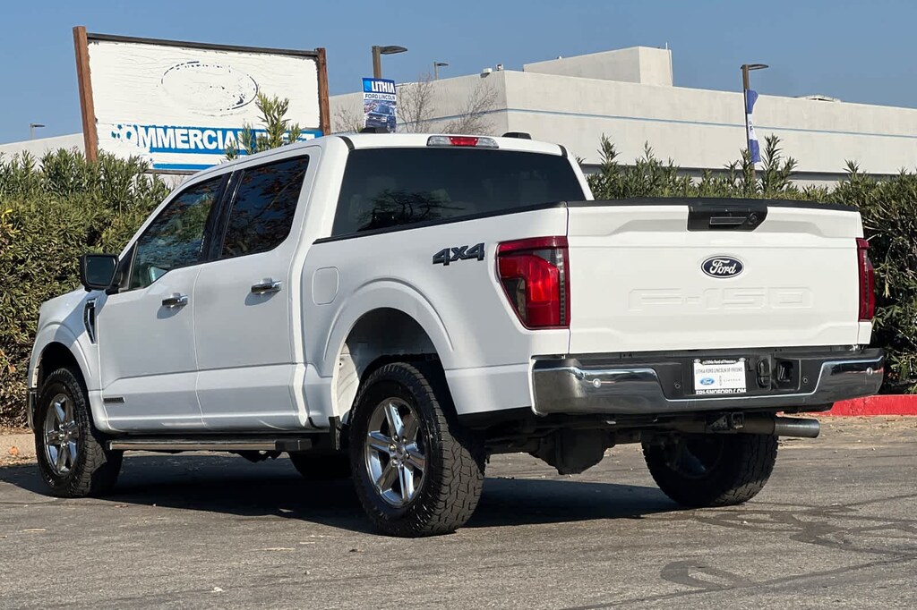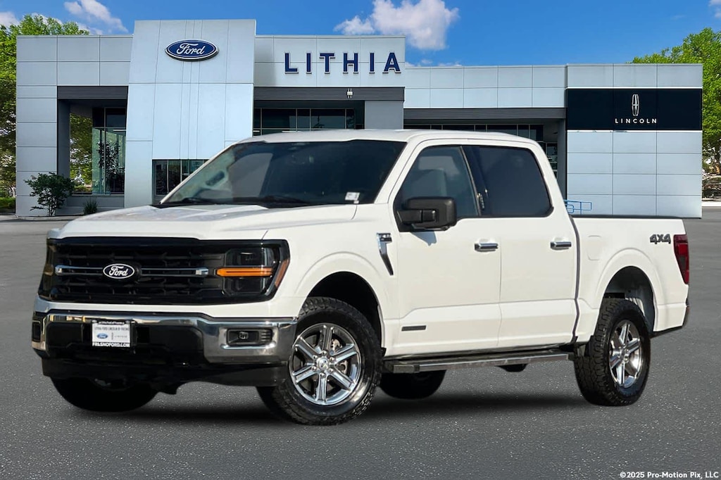 Lithia Ford and Lincoln of Fresno is pleased to offer this Oxford White 2024 Ford F-150 XLT for purchase, this vehicle is well equipped with many features including: Equipment Group 301A Standard, Mobile Office Package (Cloth 40/Console/40 Front Seats, Console Worksurface, and Partitioned Lockable Rear Storage), 3.5L PowerBoost Full-Hybrid V6, 4WD, 4-Wheel Disc Brakes, 6 Speakers, ABS brakes, Air Conditioning, Alloy wheels, AM/FM radio: SiriusXM with 360L, Auto High-beam Headlights, Auto-dimming Rear-View mirror, Automatic temperature control, Brake assist, Bumpers: chrome, Chrome wheels, Cloth 40/20/40 Front Seat, Compass, Delay-off headlights, Driver door bin, Driver vanity mirror, Dual front impact airbags, Dual front side impact airbags, Electronic Locking w/3.73 Axle Ratio, Electronic Stability Control, Emergency communication system: SYNC 4 911 Assist, Front anti-roll bar, Front Center Armrest w/Storage, Front dual zone A/C, Front fog lights, Front License Plate Bracket, Front reading lights, Front wheel independent suspension, Fully automatic headlights, Heated door mirrors, Illuminated entry, Low tire pressure warning, Navigation system: Connected Navigation, Occupant sensing airbag, Outside temperature display, Overhead airbag, Overhead console, Panic alarm, Passenger door bin, Passenger vanity mirror, Power door mirrors, Power driver seat, Power steering, Power windows, Radio data system, Radio: AM/FM SiriusXM w/360L, Rear reading lights, Rear step bumper, Rear window defroster, Remote keyless entry, Security system, Speed control, Split folding rear seat, Steering wheel mounted audio controls, SYNC 4 w/Enhanced Voice Recognition, Tachometer, Telescoping steering wheel, Tilt steering wheel, Traction control, Trip computer, Variably intermittent wipers, Voltmeter, and Wheels: 18 Chrome-Like PVD. 4WD 3.5L PowerBoost Full-Hybrid V6 10-Speed Automatic XLT