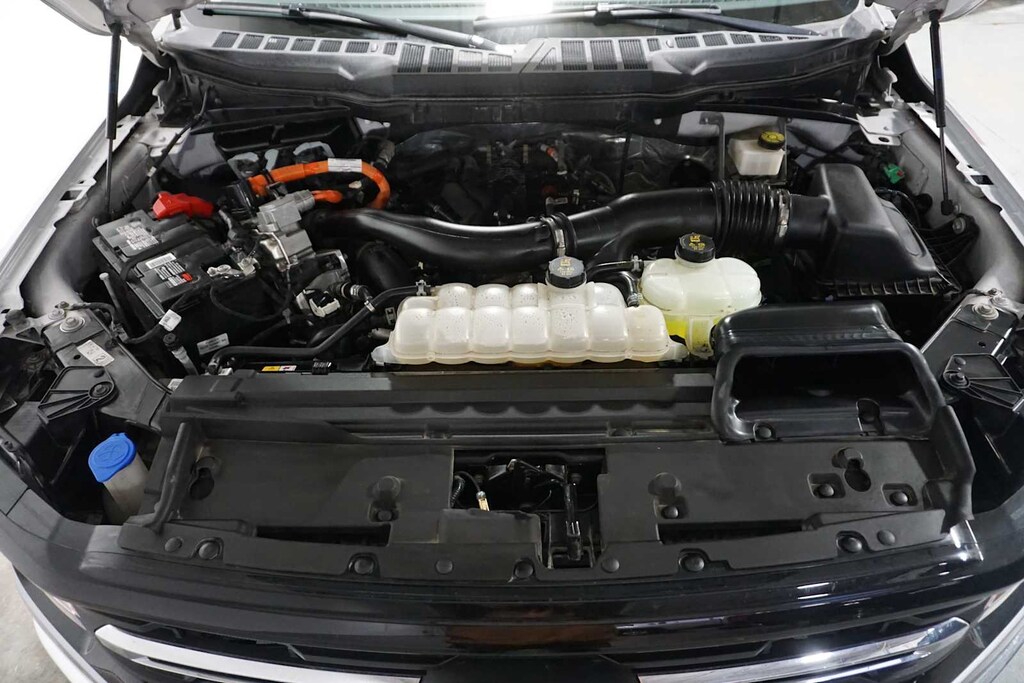 ENGINE: 3.5L POWERBOOST FULL-HYBRID V6 Pro Power Onboard 2.4KW and removes 36 gallon fuel tank, GVWR: 7,400 lbs Payload Package, Electronic Locking w/3.73 Axle Ratio. Ford XLT with Iconic Silver exterior and Medium Dark Slate interior features a V6 Cylinder Engine with 430 HP at 6000 RPM*.