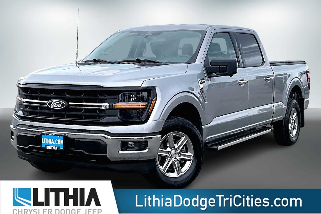 Lithia Chrysler Dodge Jeep Ram of Tri-Cities is pleased to offer this Silver 2024 Ford F-150 XLT for purchase, this vehicle is well equipped with many features including:4WD, 3.31 Axle Ratio, 4-Wheel Disc Brakes, 6 Speakers, ABS brakes, Air Conditioning, Alloy wheels, AM/FM radio: SiriusXM with 360L, Auto High-beam Headlights, Auto-dimming Rear-View mirror, Automatic temperature control, Brake assist, Bumpers: chrome, Chrome wheels, Cloth 40/20/40 Front Seat, Compass, Delay-off headlights, Driver door bin, Driver vanity mirror, Dual front impact airbags, Dual front side impact airbags, Electronic Stability Control, Emergency communication system: SYNC 4 911 Assist, Front anti-roll bar, Front Center Armrest w/Storage, Front dual zone A/C, Front fog lights, Front reading lights, Front wheel independent suspension, Fully automatic headlights, Heated door mirrors, Illuminated entry, Low tire pressure warning, Navigation system: Connected Navigation, Occupant sensing airbag, Outside temperature display, Overhead airbag, Overhead console, Panic alarm, Passenger door bin, Passenger vanity mirror, Power door mirrors, Power driver seat, Power steering, Power windows, Radio data system, Radio: AM/FM SiriusXM w/360L, Rear reading lights, Rear step bumper, Rear window defroster, Remote keyless entry, Security system, Speed control, Split folding rear seat, Steering wheel mounted audio controls, SYNC 4 w/Enhanced Voice Recognition, Tachometer, Telescoping steering wheel, Tilt steering wheel, Traction control, Trip computer, Variably intermittent wipers, Voltmeter, and Wheels: 18 Chrome-Like PVD. 2024 Ford F-150 XLT 4WD.