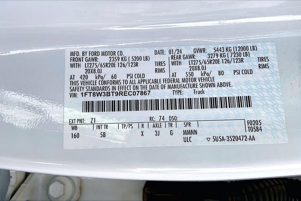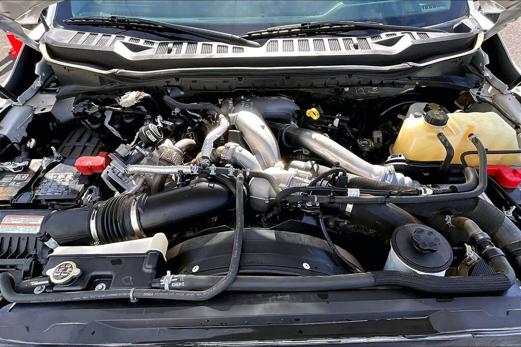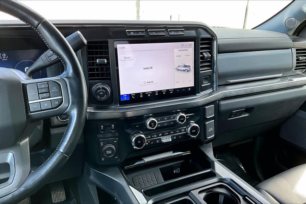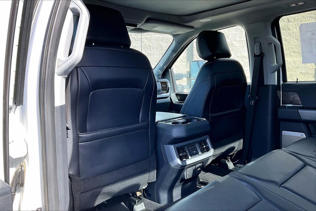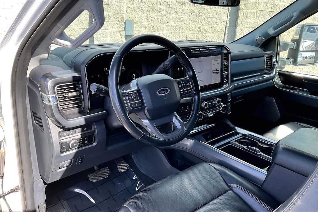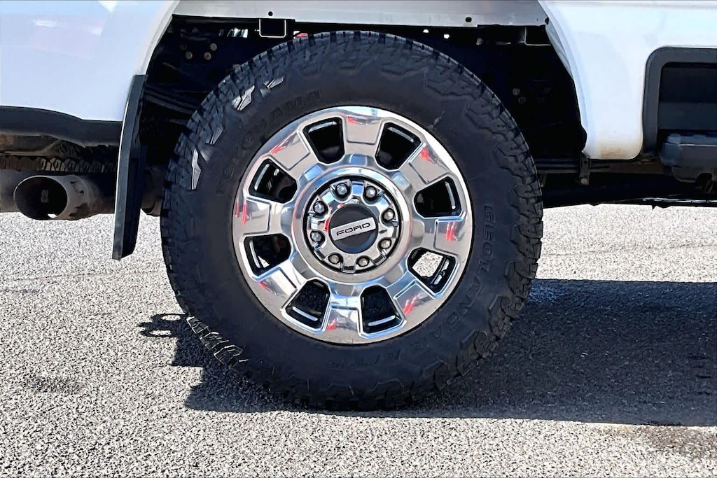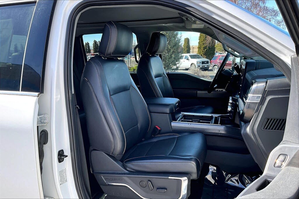ENGINE: 6.7L 4V OHV POWER STROKE V8 TURBO DIESEL B20 manual push-button engine-exhaust braking, Operator Commanded Regeneration (OCR) and intelligent oil-life monitor, 34 Gallon Fuel Tank, GVWR: 12,000 lb Payload Package, 3.31 Axle Ratio, Dual 68 AH/65 AGM Batteries, LARIAT ULTIMATE PACKAGE Wireless Charging Pad, Front Sensing System, Tailgate Step & Handle, Intelligent Adaptive Cruise Control w/Stop-and-Go, lane centering and speed sign recognition, Radio: B&O Unleashed Sound System by Bang & Olufsen, HD Radio w/14 speakers including subwoofer, Pro Trailer Hitch Assist, Ford Co-Pilot 360 2.0, rear view camera, reverse brake assist and reverse sensing system, Lane-Keeping System, lane-keeping alert, lane-keeping aid and driver alert, Pre-Collision Assist, Automatic Emergency Braking (AEB), pedestrian detection, forward collision warning, dynamic brake support and intersection assist, Post-Collision Braking, Automatic High Beam, BLIS w/Cross-Traffic Alert, trailer coverage, Upfitter Switches (6), Located in overhead console, 4-Way Adjustable Headrests, TWIN PANEL POWER MOONROOF map lights and moonroof switches, CHROME PACKAGE 2 front chrome tow hooks, Unique Chrome Mirror Caps, Tires: LT275/65Rx20E BSW Automatic Transmission (4), Spare may not be the same as road tire, Wheels: 20 Chrome PVD Aluminum, Chrome Door Handles, 6 Angular Bright Anodized Step Bars, Chrome Exhaust Tip, ELECTRONIC-LOCKING W/3.55 AXLE RATIO, TRANSMISSION: TORQSHIFT 10-SPEED AUTOMATIC SelectShift and selectable drive modes: normal, eco, slippery roads, tow/haul and off-road (STD). Ford LARIAT with Oxford White exterior and Black Onyx interior features a 8 Cylinder Engine with 475 HP at 2600 RPM*.