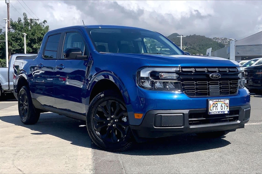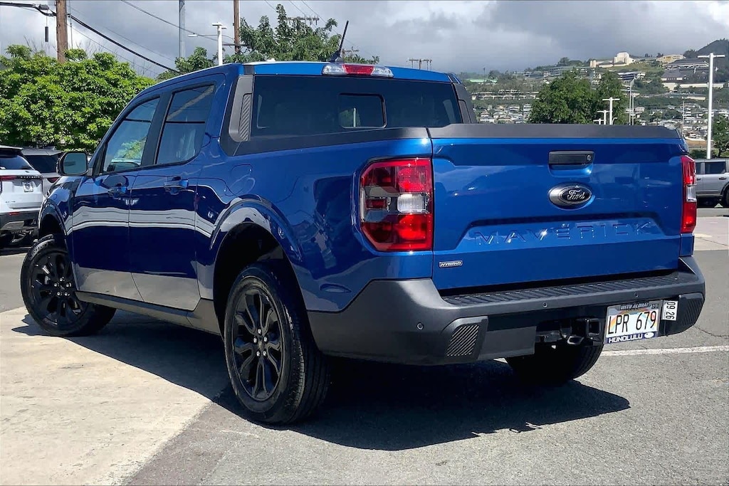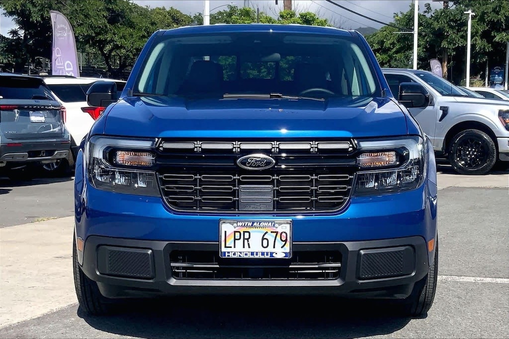 HONOLULU FORD! 808-532-1700, *DONT WAIT! CALL NOW!!, FINANCING AVAILABLE, GUARANTEED APPROVALS! LOW PAYMENTS! GREAT INTEREST RATES!, ***FORD CERTIFIED VEHICLE!! 172 POINT INSPECTION, OIL CHANGE, NEW WIPERS, NEW AIR FILTERS, FULL DET, WE SHIP TO NEIGHBOR ISLANDS!, 172 POINT INSPECTION BY FACTORY TRAINED TECHNICIANS!, STATE SAFETY INSPECTION COMPLETE!, APPLE CAR PLAY/ANDROID AUTO, BLUETOOTH HANDS FREE CALLING, ONE OWNER!!, BACK-UP CAMERA, 360 SURROUND VISION CAMERA, EXTRA CLEAN, EXCELLENT CONDITION!, EXCELLENT SERVICE HISTORY!!, UPGRADED WHEELS, TOUCH SCREEN, 2.5L I-4 Hybrid, 2.91 Axle Ratio, 4-Wheel Disc Brakes, 8 Speakers, ABS brakes, ActiveX Trimmed Front Bucket Seats, Air Conditioning, Alloy wheels, AM/FM radio: SiriusXM, Auto High-beam Headlights, Automatic temperature control, Black Appearance Package, Black Grille, Black Headlamps, Black Interior Accents, Black Taillamps, Brake assist, Bumpers: body-color, Compass, Delay-off headlights, Driver door bin, Driver vanity mirror, Dual front impact airbags, Dual front side impact airbags, Electronic Stability Control, Emergency communication system: 911 Assist, Equipment Group 500A Standard, Exterior Parking Camera Rear, Front & Back Black Edition Ford Logo, Front anti-roll bar, Front Bucket Seats, Front Center Armrest, Front dual zone A/C, Front reading lights, Front wheel independent suspension, Fully automatic headlights, Heated door mirrors, Heated front seats, Heated steering wheel, Illuminated entry, Knee airbag, Low tire pressure warning, Navigation System, Occupant sensing airbag, Outside temperature display, Overhead airbag, Overhead console, Panic alarm, Passenger door bin, Passenger vanity mirror, Power door mirrors, Power driver seat, Power steering, Power windows, Radio data system, Radio: B&O Sound System by Bang & Olufsen, Rear anti-roll bar, Rear Parking Sensors, Rear seat center armrest, Rear step bumper, Remote keyless entry, Security system, SiriusXM Radio, Speed control, Speed-sensing steering, Steering wheel mounted audio controls, SYNC 3 Communications & Entertainment System, Telescoping steering wheel, Tilt steering wheel, Traction control, Trip computer, Wheels: 18 Machined-Face Bright Aluminum, Wheels: 18 Unique Machined-Face Ebony Aluminum, 2.5L I-4 Hybrid. Recent Arrival! CARFAX One-Owner. Clean CARFAX. Atlas Blue Metallic 2024 Ford Maverick Lariat FWD CVT 2.5L I-4 Hybrid