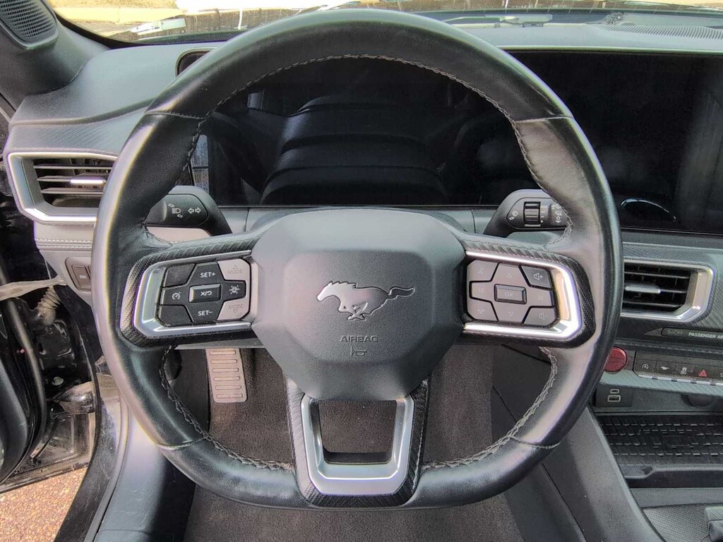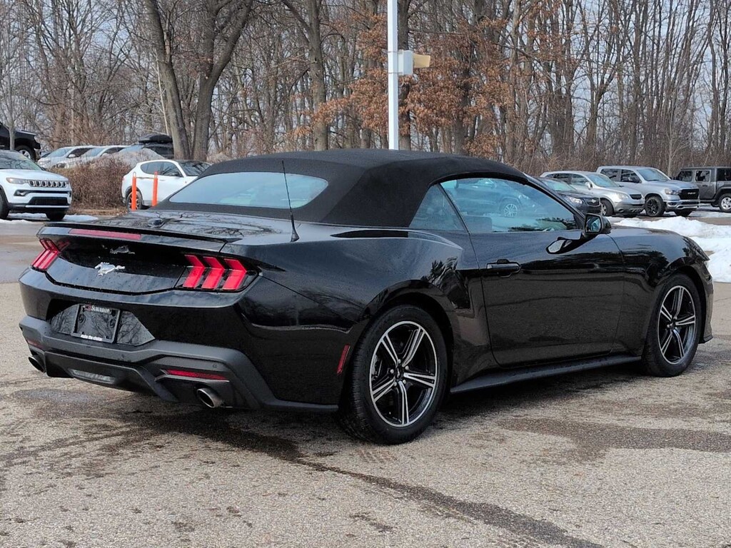 se habla Espanol! A thrilling thoroughbred, our One Owner 2024 Ford Mustang EcoBoost Premium Convertible is quick and comfortable in Shadow Black! Powered by a TurboCharged 2.3 Liter EcoBoost 4 Cylinder providing 315hp to a paddle-shifted 10 Speed Automatic transmission for a rewarding mix of exhilaration and acceleration. This proud pony drop-top also reacts with precision handling, and it returns nearly 33mpg on the highway. Iconic Mustang DNA gets a dynamic upgrade with LED lighting, sequential taillights, a powered soft top, bold alloy wheels, heated power mirrors, and bright dual exhaust tips.