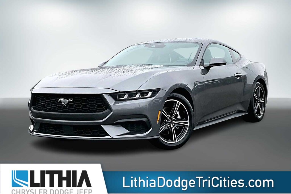 Lithia Chrysler Dodge Jeep Ram of Tri-Cities is pleased to offer this Gray Metallic 2024 Ford Mustang EcoBoost Premium for purchase, this vehicle is well equipped with many features including:4-Wheel Disc Brakes, ABS brakes, Air Conditioning, Alloy wheels, AM/FM Stereo, Auto High-beam Headlights, Automatic temperature control, Brake assist, Bumpers: body-color, Compass, Delay-off headlights, Driver door bin, Driver vanity mirror, Dual front impact airbags, Dual front side impact airbags, Electronic Stability Control, Emergency communication system: 911 Assist, Exterior Parking Camera Rear, Four wheel independent suspension, Front anti-roll bar, Front Bucket Seats, Front Center Armrest, Front reading lights, Fully automatic headlights, Illuminated entry, Knee airbag, Leather Shift Knob, Low tire pressure warning, Occupant sensing airbag, Outside temperature display, Overhead airbag, Overhead console, Panic alarm, Passenger door bin, Passenger vanity mirror, Power door mirrors, Power steering, Power windows, Radio data system, Rain sensing wipers, Rear anti-roll bar, Rear Parking Sensors, Rear window defroster, Remote keyless entry, Speed control, Speed-sensing steering, Speed-Sensitive Wipers, Split folding rear seat, Sport steering wheel, Steering wheel mounted audio controls, SYNC 4.0 QNX, Tachometer, Telescoping steering wheel, Tilt steering wheel, Traction control, Trip computer, Variably intermittent wipers, Voltmeter, and Wheels: 18 x 8 Machined-Face Aluminum. 2024 Ford Mustang EcoBoost Premium