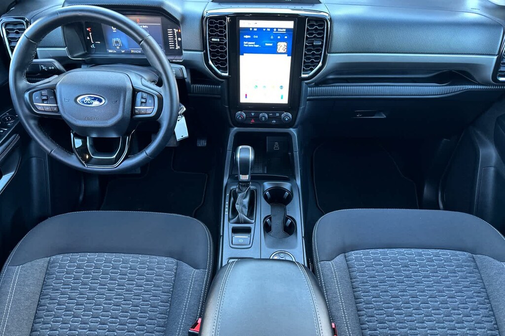 TRAILER TOW PACKAGE towing capability up to TBD lbs and 4-pin/7-pin wiring harness, Class IV Trailer Hitch Receiver, ELECTRONIC-LOCKING REAR DIFFERENTIAL, TRANSMISSION: ELECTRONIC 10-SPEED AUTOMATIC selectable drive modes: normal, ECO, sport, tow/haul and slippery (STD). 2024 Ford Ranger with Iconic Silver exterior and Ebony interior features a 4 Cylinder Engine with 270 HP at 5500 RPM*.