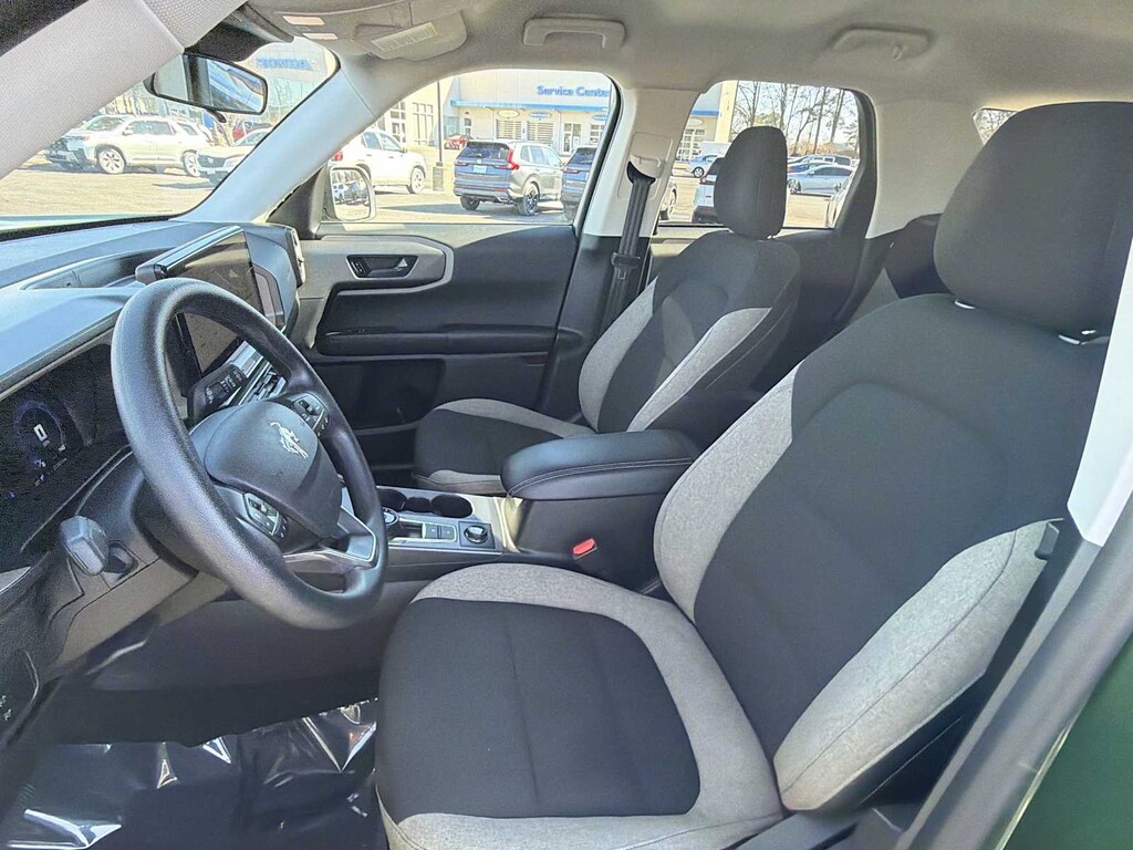 Bronco Sport Big Bend is nicely equipped with Bronco Sport Big Bend, 4D Sport Utility, 1.5L EcoBoost, 8-Speed Automatic, 4WD, Eruption Green Metallic, Medium Light Smoked Truffle w/Cloth with Easy-to-Clean Front Bucket Seats, 4-Wheel Disc Brakes, 6 Speakers, ABS brakes, Air Conditioning, Alloy wheels, AM/FM radio: SiriusXM, AM/FM Stereo, Auto High-beam Headlights, Automatic temperature control, Brake assist, Cloth w/Easy-to-Clean Front Bucket Seats, Compass, Delay-off headlights, Driver door bin, Driver vanity mirror, Dual front impact airbags, Dual front side impact airbags, Electronic Stability Control, Emergency communication system: SYNC 4 911 Assist, Four wheel independent suspension, Front anti-roll bar, Front Bucket Seats, Front Center Armrest, Front reading lights, Fully automatic headlights, Heated door mirrors, Illuminated entry, Knee airbag, Low tire pressure warning, Occupant sensing airbag, Outside temperature display, Overhead airbag, Overhead console, Panic alarm, Passenger door bin, Passenger vanity mirror, Power door mirrors, Power steering, Power windows, Radio data system, Rear anti-roll bar, Rear Parking Sensors, Rear reading lights, Rear seat center armrest, Rear window defroster, Rear window wiper, Remote keyless entry, Security system, SiriusXM, Speed control, Speed-sensing steering, Speed-Sensitive Wipers, Split folding rear seat, Steering wheel mounted audio controls, SYNC 4 w/Enhanced Voice Recognition, Tachometer, Telescoping steering wheel, Tilt steering wheel, Traction control, Trip computer, Variably intermittent wipers, and Wheels: 17 Carbonized Gray-Painted Aluminum.