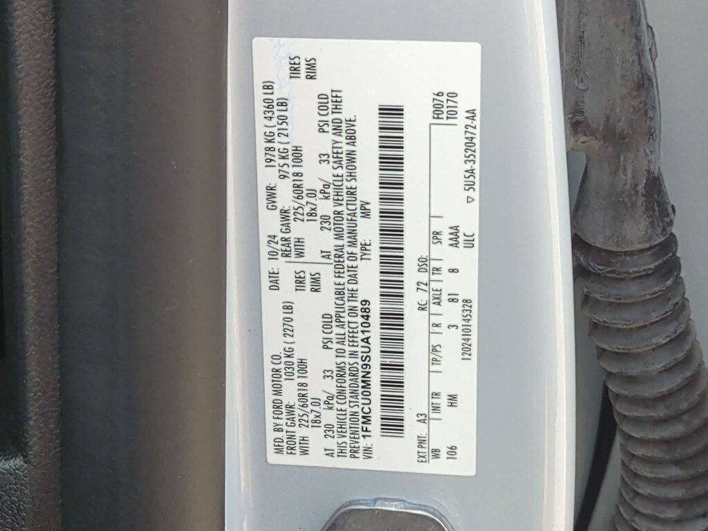MINI SPARE WHEEL T155/70D17 spare tire and jack, ENGINE: 1.5L ECOBOOST auto start-stop technology (STD). 2025 Ford Escape with Space Silver exterior and Ebony w/Red Stitching interior features a 3 Cylinder Engine with 180 HP at 6000 RPM*.