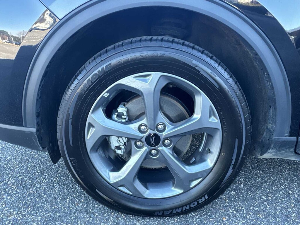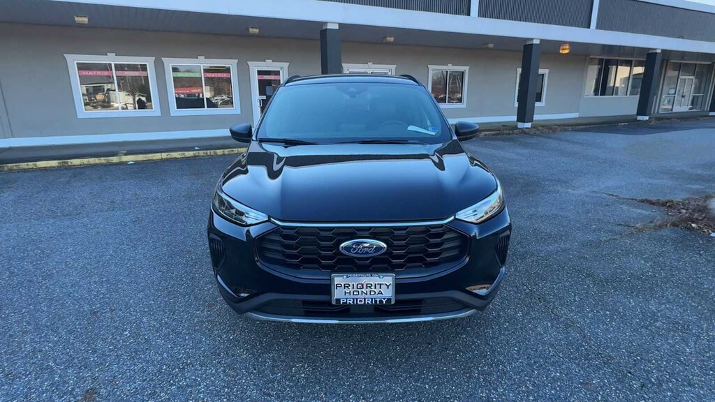 Escape ST-Line is nicely equipped with Equipment Group 300A, Escape ST-Line, 4D Sport Utility, 1.5L EcoBoost, 8-Speed Automatic, AWD, Agate Black Metallic, Ebony w/Vinyl/Cloth Front Sport Contour Bucket Seats, 3.81 Axle Ratio, 4-Wheel Disc Brakes, 6 Speakers, ABS brakes, Air Conditioning, Alloy wheels, AM/FM radio: SiriusXM, AM/FM Stereo, Auto High-beam Headlights, Automatic temperature control, Brake assist, Bumpers: body-color, Compass, Delay-off headlights, Driver door bin, Driver vanity mirror, Dual front impact airbags, Dual front side impact airbags, Electronic Stability Control, Emergency communication system: SYNC 4 911 Assist, FordPass Connect, Four wheel independent suspension, Front anti-roll bar, Front Bucket Seats, Front Center Armrest, Front dual zone A/C, Front reading lights, Fully automatic headlights, Illuminated entry, Internet access capable: FordPass Connect 4G, Knee airbag, Low tire pressure warning, Occupant sensing airbag, Outside temperature display, Overhead airbag, Overhead console, Panic alarm, Passenger door bin, Passenger vanity mirror, Power door mirrors, Power driver seat, Power steering, Power windows, Radio data system, Rear anti-roll bar, Rear reading lights, Rear seat center armrest, Rear window defroster, Rear window wiper, Remote keyless entry, Speed control, Speed-sensing steering, Speed-Sensitive Wipers, Split folding rear seat, Spoiler, Sport steering wheel, Steering wheel mounted audio controls, SYNC 4, Tachometer, Telescoping steering wheel, Tilt steering wheel, Traction control, Trip computer, Variably intermittent wipers, Vinyl/Cloth Front Sport Contour Bucket Seats, and Wheels: 18 Rock Metallic Painted Aluminum.