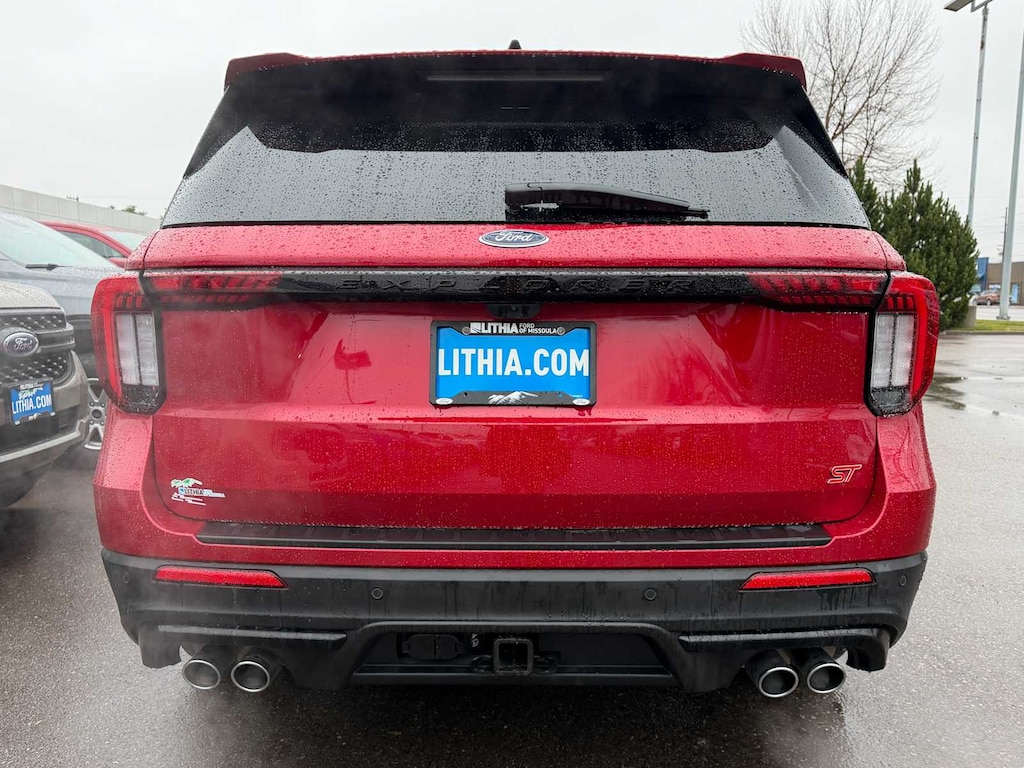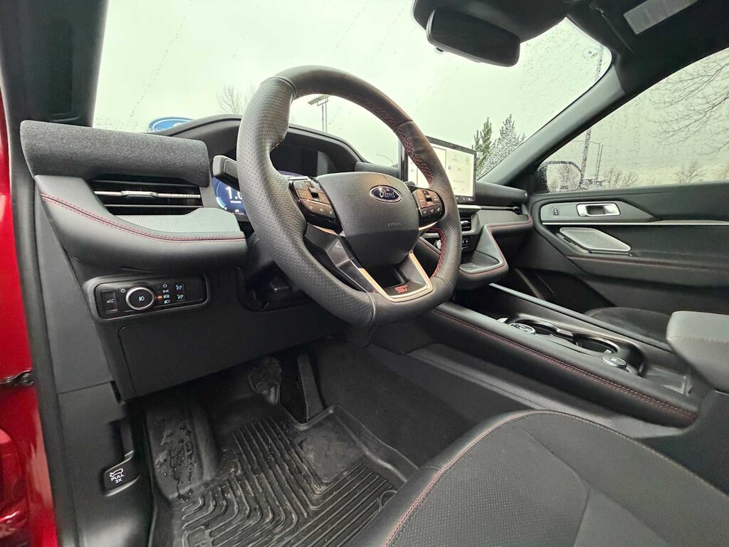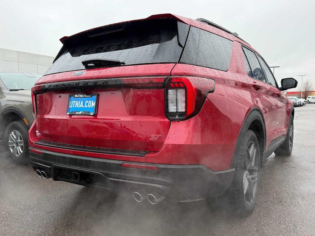 Clean CARFAX. CARFAX One-Owner. Red Metallic 2025 Ford Explorer ST 4WD 10-Speed Automatic 3.0L EcoBoost V6 FRESH WINDSHIELD WIPERS INSTALLED, FRESH AIR FILTERS INSTALLED, FRESH OIL CHANGE, MULTI POINT SAFETY AND MECHANICAL INSPECTION PERFORMED BY CERTIFIED TECHNICIAN, INTERIOR and EXTERIOR PROFESSIONALLY DETAILED FOR DELIVERY, REMAINDER OF FACTORY WARRANTY STILL APPLIES, NON-SMOKER!, 4WD, B&O Sound System by Bang & Olufsen, Equipment Group 400A Standard Package, Multicontour Seats w/Front Active Motion, Navigation System, Panoramic Vista Roof w/Power Shade, Sun and Sound Package.