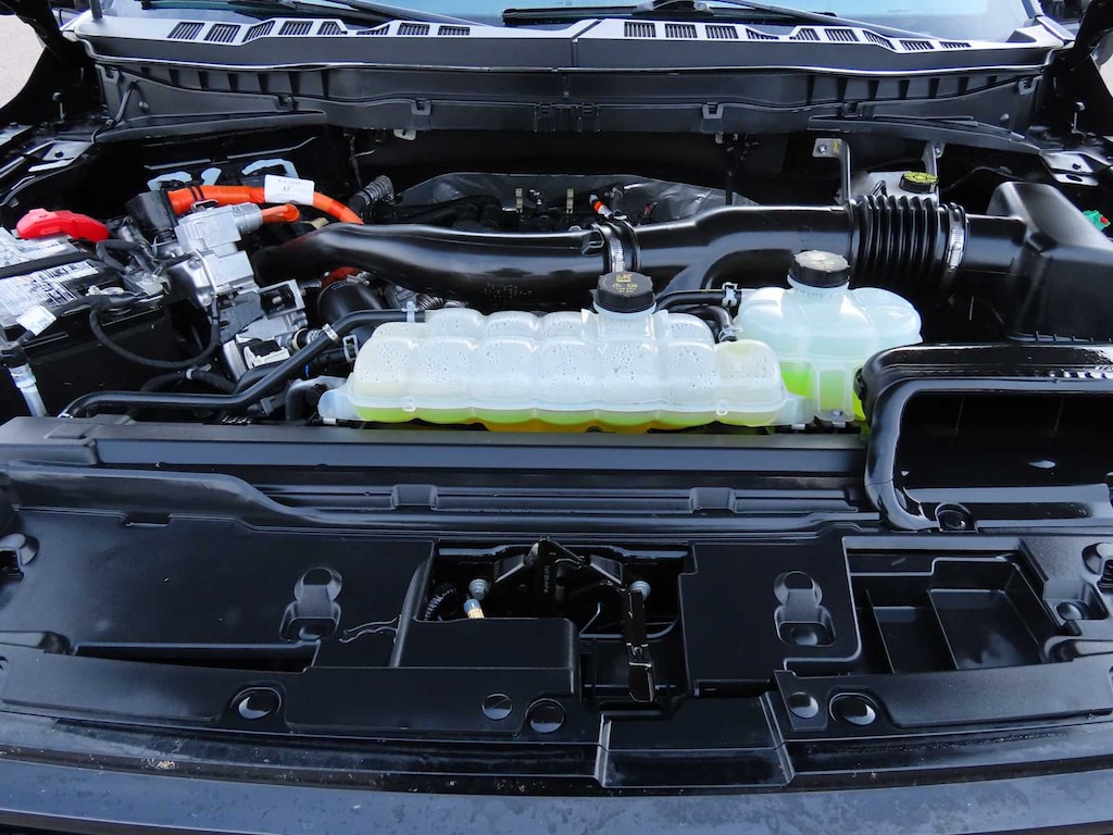 EQUIPMENT GROUP 702A HIGH Twin Panel Moonroof, Heads-Up Display, Radio: B&O Unleashed Sound System by Bang & Olufsen, HD Radio and 14 speakers including subwoofer, ENGINE: 3.5L POWERBOOST FULL-HYBRID V6 Pro Power Onboard 7.2KW and removes 36 gallon fuel tank, GVWR: 7,400 lbs Payload Package, Electronic Locking w/3.73 Axle Ratio, FX4 OFF-ROAD PACKAGE Off-Road Tuned Front Shock Absorbers, Skid Plates, fuel tank, transfer case and front differential, Monotube Rear Shocks, Rock Crawl Mode, 4x4 FX4 Off-Road Bodyside Decal, Hill Descent Control, Tray Style Floor Liner, TOUGH BED SPRAY-IN BEDLINER. MP3 Player, 4x4, Onboard Communications System, Aluminum Wheels, Keyless Entry, Privacy Glass, Child Safety Locks.