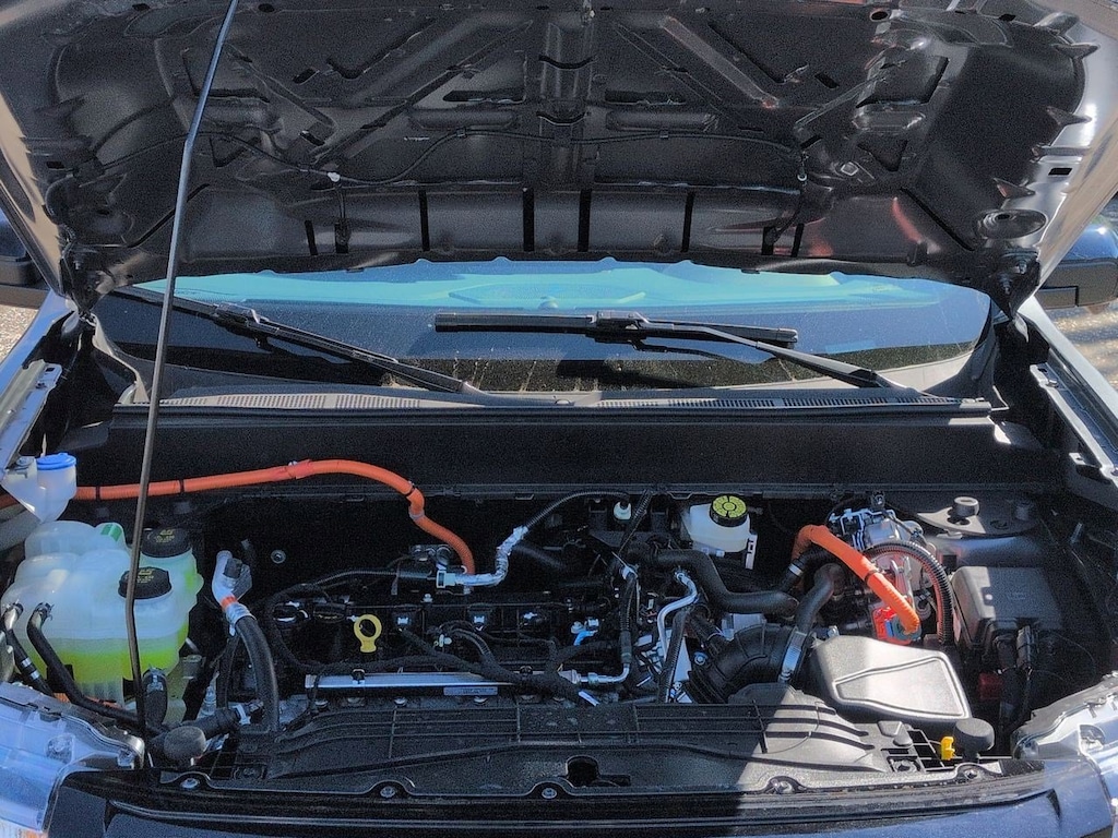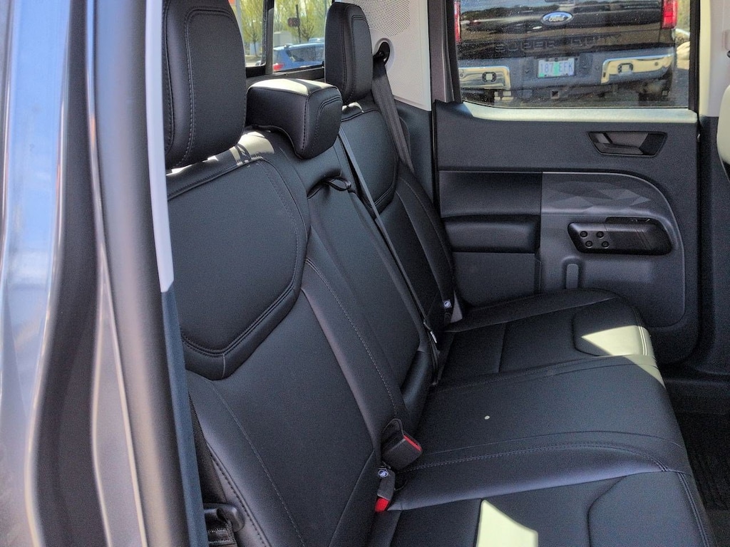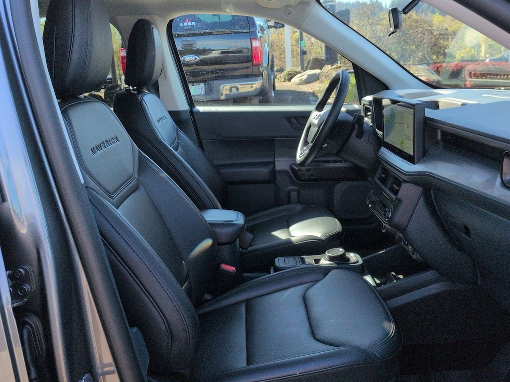 2.5L I-4 Hybrid, 2.91 Axle Ratio, 4-Wheel Disc Brakes, 4K Tow Package, 8 Speakers, ABS brakes, ActiveX Trimmed Heated Front Bucket Seats, Air Conditioning, Alloy wheels, AM/FM radio: SiriusXM with 360L, Apple CarPlay/Android Auto, Auto High-beam Headlights, Automatic temperature control, Black Appearance Package, Black Grille, Black Interior Accents, Brake assist, Bumpers: body-color, Compass, Delay-off headlights, Driver door bin, Driver vanity mirror, Dual front impact airbags, Dual front side impact airbags, Electronic Stability Control, Emergency communication system: SYNC 4 911 Assist, Engine Block Heater, Equipment Group 501A, Exterior Parking Camera Rear, Four wheel independent suspension, Front & Back Black Edition Ford Logo, Front & Rear Floor Liners w/o Carpet Mats, Front anti-roll bar, Front Bucket Seats, Front Center Armrest, Front dual zone A/C, Front reading lights, Fully automatic headlights, Heated door mirrors, Heated front seats, Heated steering wheel, Illuminated entry, Internet access capable: FordPass Connect 5G, Knee airbag, Low tire pressure warning, Navigation system: Connected Navigation, Occupant sensing airbag, Outside temperature display, Overhead airbag, Overhead console, Panic alarm, Passenger door bin, Passenger vanity mirror, Power door mirrors, Power driver seat, Power Moonroof, Power steering, Power windows, Radio data system, Radio: B&O Sound System by Bang & Olufsen, Rear anti-roll bar, Rear seat center armrest, Rear step bumper, Remote keyless entry, Security system, SiriusXM w/360L, Speed control, Speed-sensing steering, Steering wheel mounted audio controls, SYNC 4 w/Enhanced Voice Recognition, Telescoping steering wheel, Tilt steering wheel, Traction control, Trailer Brake Controller, Trailer Hitch (Class III) 2 Receiver, Transmission Oil Cooler, Trip computer, Upgraded Cooling Fan, Wheels: 19 Black Painted Aluminum, Wheels: 19 Machined Painted Aluminum, 2.5L I-4 Hybrid. Azure Gray Metallic 2025 Ford Maverick Lariat AWD CVT 2.5L I-4 Hybrid