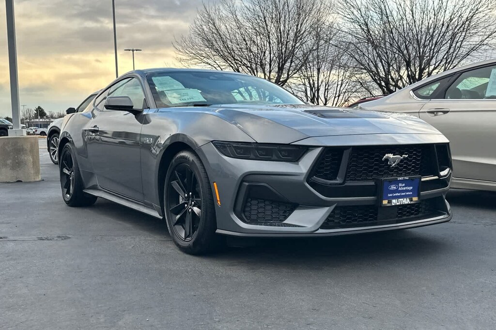 3.55 LIMITED SLIP REAR AXLE, ENGINE: 5.0L TI-VCT V8 stop/start system and Port Fueled Direct Injection (PFDI) (STD). 2025 Ford Mustang with Carbonized Gray exterior and Black Onyx interior features a 8 Cylinder Engine with 480 HP at 7150 RPM*.