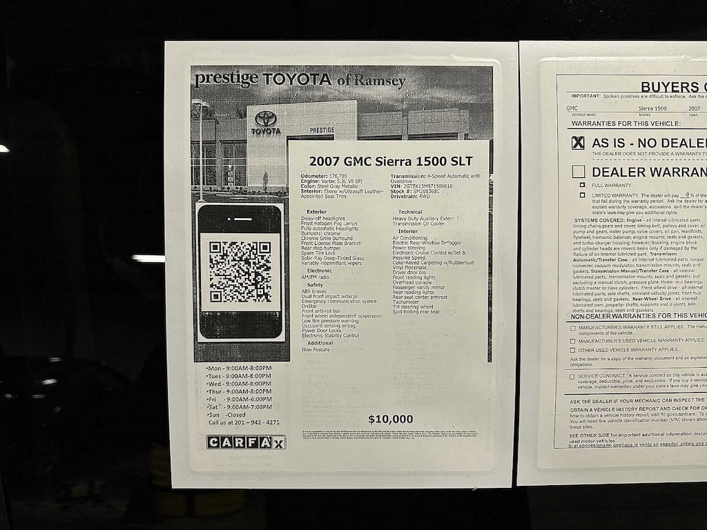 Sierra 1500 SLT, 4D Crew Cab, Vortec 5.3L V8 SFI, 4-Speed Automatic with Overdrive, 4WD, Steel Gray Metallic, Ebony w/Ultrasoft Leather-Appointed Seat Trim, Heavy-Duty Auxiliary External Transmission Oil Cooler, Heavy-Duty Trailering Equipment, Skid Plate Package. Clean CARFAX. Steel Gray Metallic 2007 GMC Sierra 1500 SLT 4WD 4-Speed Automatic with Overdrive Vortec 5.3L V8 SFI