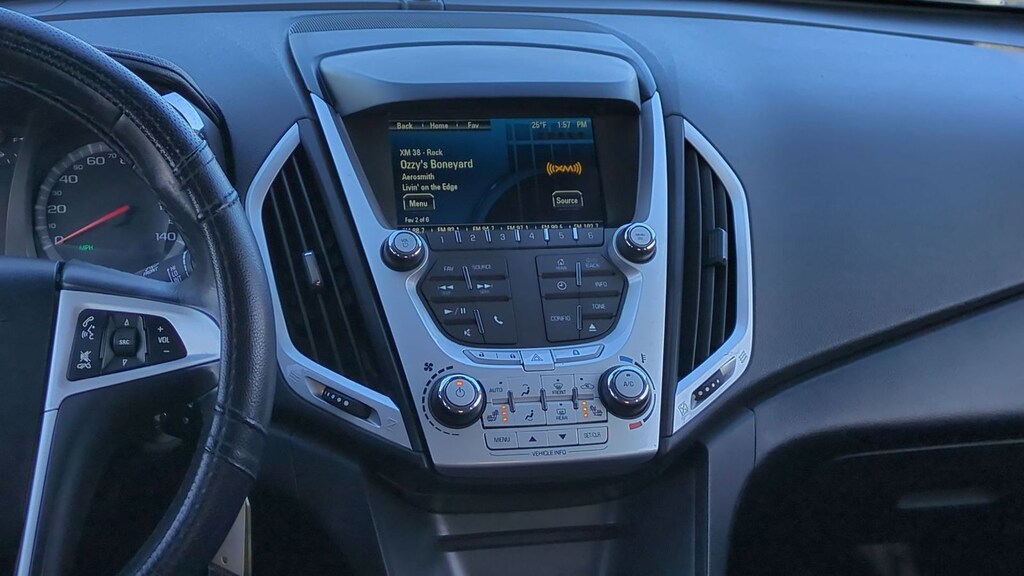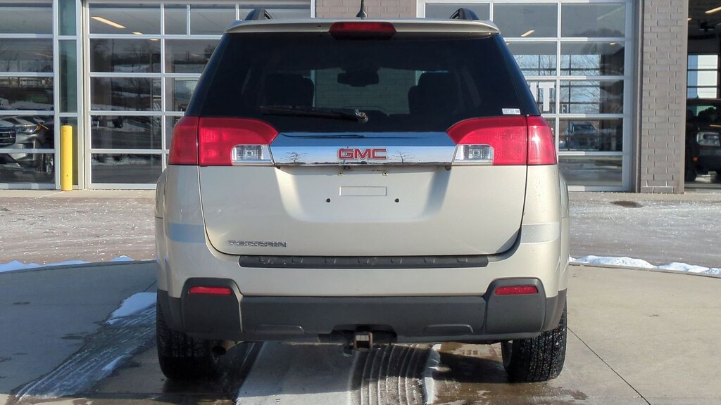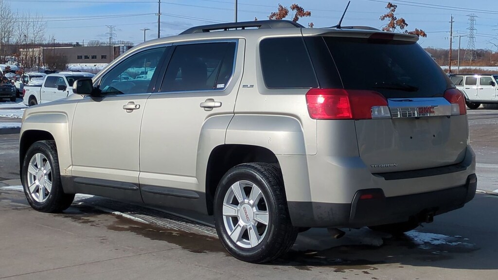 2013 GMC Terrain SLE-2 Is nicely equipped with Convenience Package (Heated Driver & Front Passenger Seats and Remote Vehicle Start), Preferred Equipment Group 3SB (Single-Zone Automatic Climate Control), 17" x 7.5" Painted Aluminum Wheels, 3.23 Axle Ratio, 4-Wheel Disc Brakes, 8 Speakers, ABS brakes, Air Conditioning, Alloy wheels, AM/FM radio: SiriusXM, Auto-dimming Rear-View mirror, Automatic temperature control, Brake assist, Bumpers: body-color, CD player, Compass, Delay-off headlights, Driver door bin, Driver vanity mirror, Dual front impact airbags, Dual front side impact airbags, E10 Fuel Capable, E85 Flexfuel Capable, Electronic Stability Control, Emergency communication system: OnStar Directions & Connections, Exterior Parking Camera Rear, Four wheel independent suspension, Front anti-roll bar, Front Bucket Seats, Front Center Armrest, Front fog lights, Front reading lights, Fully automatic headlights, Heated door mirrors, Illuminated entry, IntelliLink, Low tire pressure warning, Occupant sensing airbag, Outside temperature display, Overhead airbag, Panic alarm, Passenger door bin, Passenger vanity mirror, Power door mirrors, Power driver seat, Power steering, Power windows, Premium Cloth Seat Trim, Radio data system, Radio: Color Touch AM/FM Stereo w/CD Player, Rear anti-roll bar, Rear seat center armrest, Rear window defroster, Rear window wiper, Remote keyless entry, Roof rack: rails only, Security system, SIRIUSXM Satellite Radio, Speed control, Speed-sensing steering, Split folding rear seat, Spoiler, Steering wheel mounted audio controls, Tachometer, Telescoping steering wheel, Tilt steering wheel, Traction control, Trip computer, and Variably intermittent wipers.