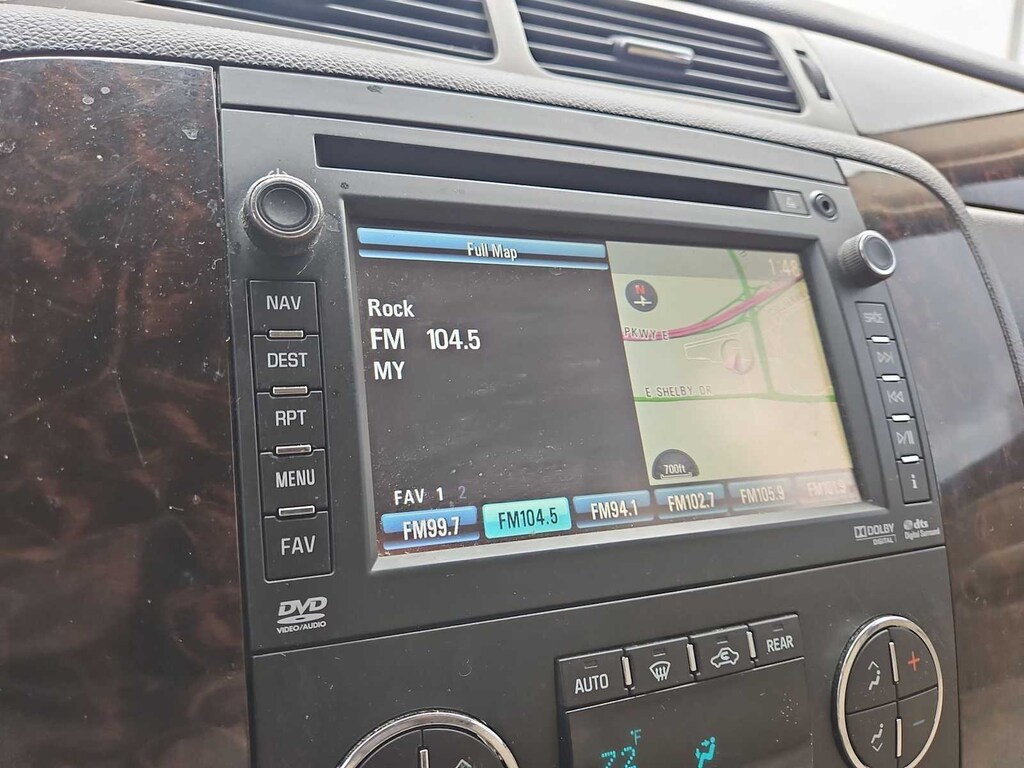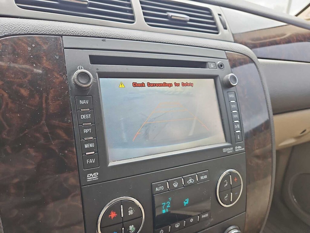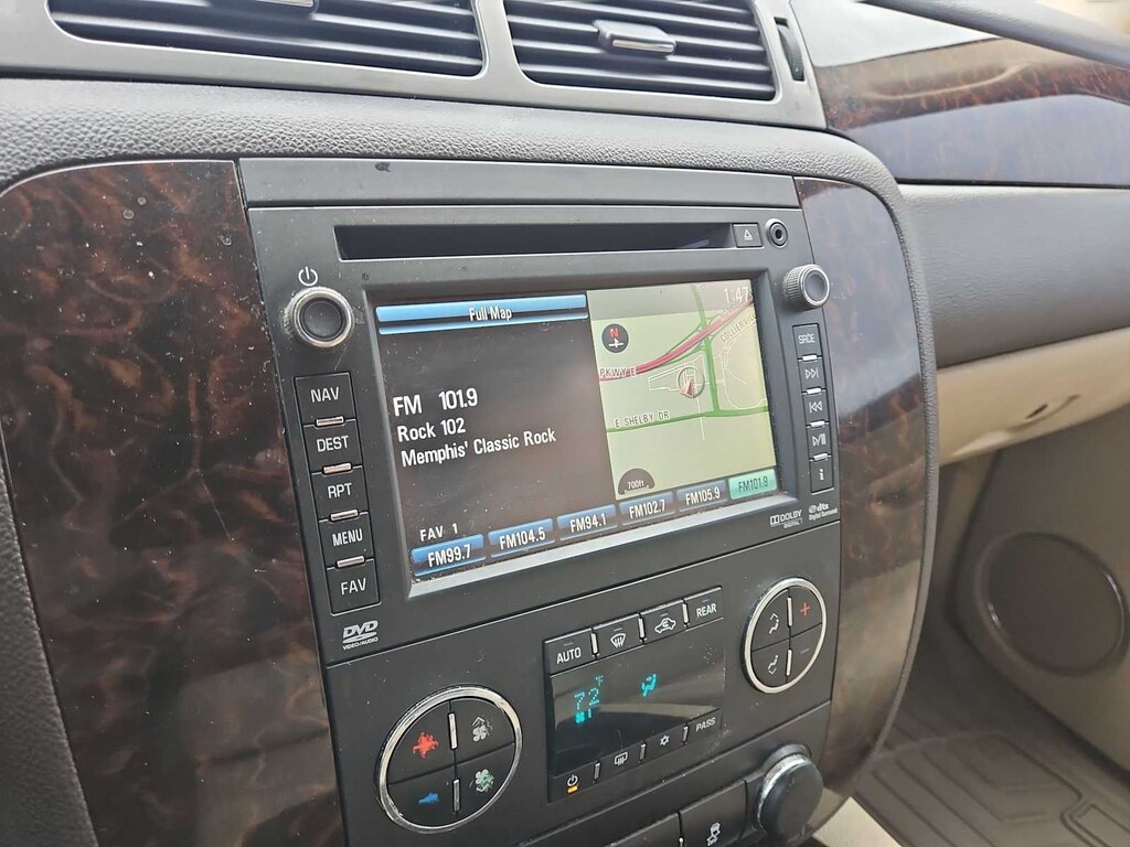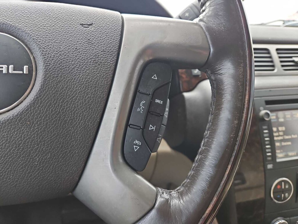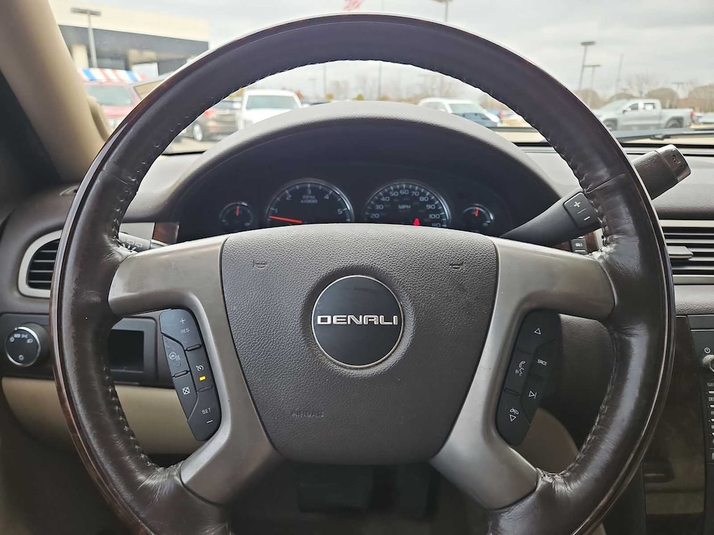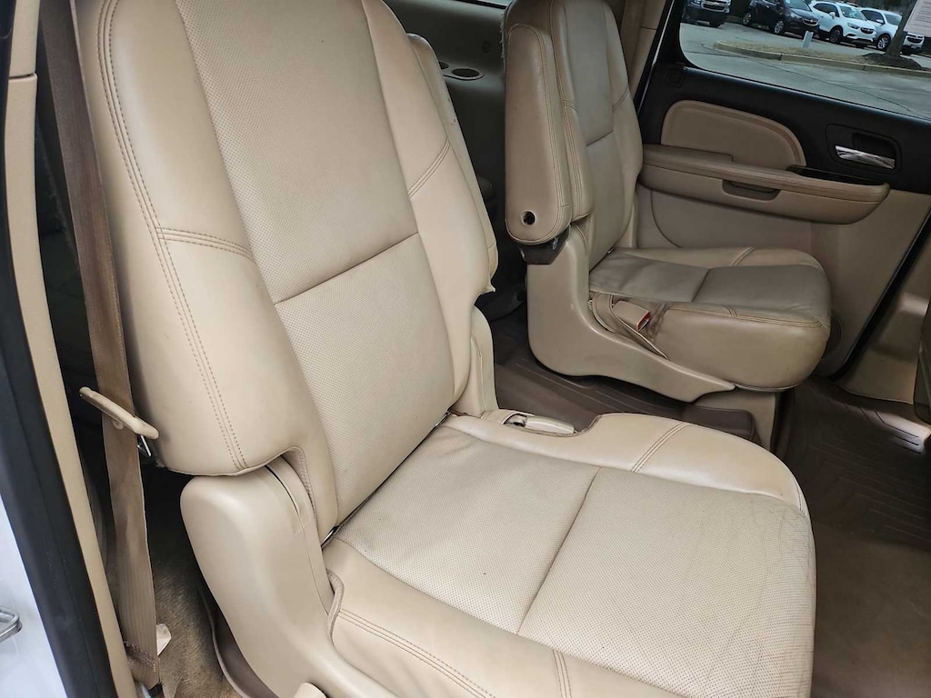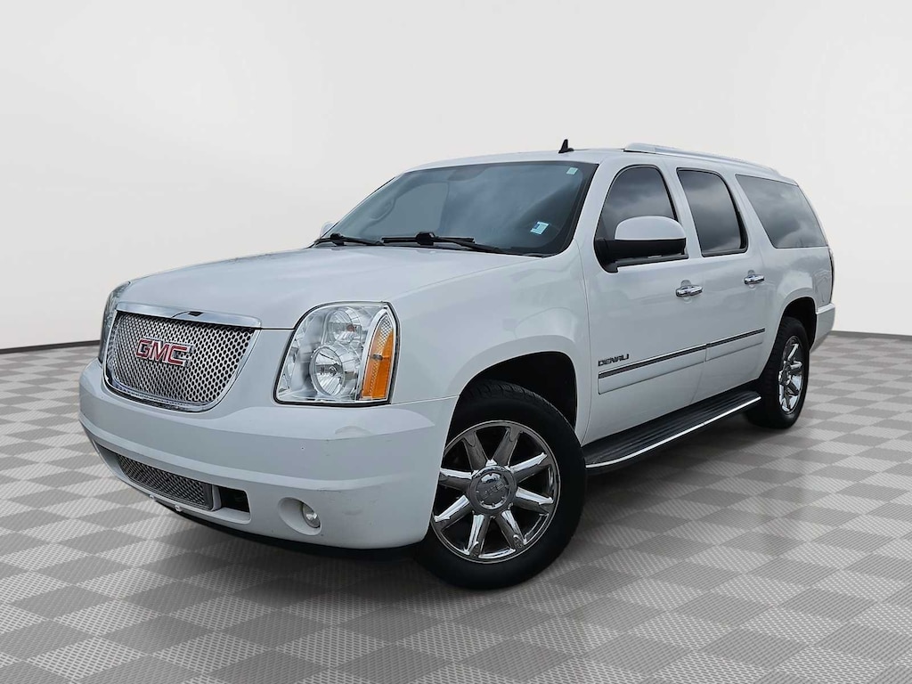 Clean CARFAX. Summit White This Yukon XL Denali is nicely equipped with Autoride Suspension Package (Automatic Air Level Control), Preferred Equipment Group 5SA (2nd Row Power Seat Release Only, 2nd Row Reclining Captains Bucket Seats, Body-Color Power-Adjustable Heated Outside Mirrors, Color-Keyed Heated Leather-Wrapped Steering Wheel, Front Round Halogen Fog Lamps, Heated & Cooled Driver & Front Passenger Seats, Heated 2nd Row Seats, Heavy-Duty Air-to-Oil Auxiliary Transmission Oil Cooler, Heavy-Duty Air-to-Oil External Engine Oil Cooler, Luggage Rack Center Rails, Power-Adjustable Pedals For Accelerator & Brake, Rear Power-Operated Liftgate, Remote Vehicle Starter System, and Universal Home Remote), Sun, Entertainment & Destinations Package (3rd Row DVD Screen, Inside Rear-View Auto-Dimming Mirror, Power Tilt-Sliding Sunroof w/Express-Open/Close, and Rear-Seat DVD Player Entertainment System), 10 Speakers, 12-Way Power Driver Seat Adjuster, 12-Way Power Front Passenger Seat Adjuster, 20 x 8.5 Chrome Aluminum Wheels, 3.42 Rear Axle Ratio, 3rd row seats: split-bench, 4-Wheel Disc Brakes, ABS brakes, Adjustable pedals, Air Conditioning, Alloy wheels, AM/FM radio: SiriusXM, Auto-dimming door mirrors, Auto-dimming Rear-View mirror, Auto-leveling suspension, Automatic temperature control, Bodyside moldings, Bumpers: body-color, CD player, Chrome wheels, Compass, Delay-off headlights, Driver door bin, Driver vanity mirror, Dual front impact airbags, Dual front side impact airbags, DVD-Audio, Electronic Stability Control, Emergency communication system: OnStar Directions & Connections, Exterior Parking Camera Rear, Floor Console w/Storage Area, Front anti-roll bar, Front Bucket Seats, Front Center Armrest, Front dual zone A/C, Front fog lights, Front Full-Feature Reclining Bucket Seats, Front reading lights, Front wheel independent suspension, Fully automatic headlights, Garage door transmitter, Heated door mirrors, Heated front seats, Heated rear seats, Heated steering wheel, Illuminated entry, Leather Shift Knob, Leather steering wheel, Low tire pressure warning, Memory seat, Navigation System, NavTraffic, Occupant sensing airbag, Outside temperature display, Overhead airbag, Overhead console, Panic alarm, Passenger door bin, Passenger vanity mirror, Pedal memory, Perforated Nuance Leather-Appointed Seat Trim, Power door mirrors, Power driver seat, Power Liftgate, Power passenger seat, Power steering, Power windows, Radio data system, Radio: AM/FM/SiriusXM Stereo w/CD/Navigation, Rear air conditioning, Rear anti-roll bar, Rear audio controls, Rear reading lights, Rear Vision Camera, Rear window defroster, Rear window wiper, Remote keyless entry, Roof rack, Security system, SiriusXM Satellite Radio, Speed control, Split folding rear seat, Spoiler, Steering wheel memory, Steering wheel mounted audio controls, Tachometer, Tilt steering wheel, Traction control, Trip computer, Turn signal indicator mirrors, USB Port, Variably intermittent wipers, Ventilated front seats, and Voltmeter. Price does not include licensing costs, registration fees, taxes and dealer doc fee of $899.50 which are to be paid by the consumer. Mileage is EPA Estimated.