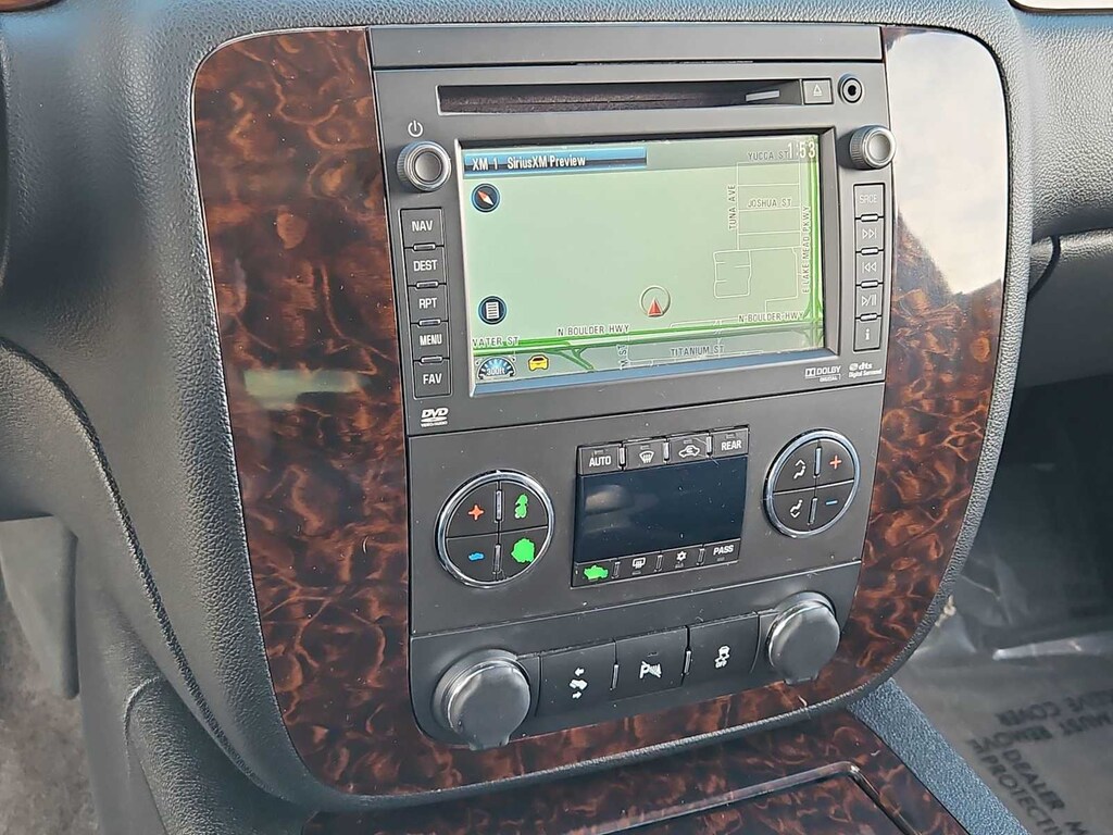10 Speakers, 20 x 8.5 Chrome Aluminum Wheels, 2nd Row Power Seat Release Only, 2nd Row Reclining Captains Bucket Seats, 3.42 Rear Axle Ratio, 3rd row seats: split-bench, 4-Wheel Disc Brakes, ABS brakes, Adjustable pedals, Air Conditioning, Alloy wheels, AM/FM radio: SiriusXM, Auto-dimming door mirrors, Auto-dimming Rear-View mirror, Auto-leveling suspension, Automatic Air Level Control, Automatic temperature control, Autoride Suspension Package, Auxiliary External Transmission Oil Cooler, Body-Color Power-Adjustable Heated Outside Mirrors, Bodyside moldings, Bumpers: body-color, CD player, Chrome wheels, Color-Keyed Heated Leather-Wrapped Steering Wheel, Compass, Delay-off headlights, Denali Package, Driver door bin, Driver vanity mirror, Dual front impact airbags, Dual front side impact airbags, DVD-Audio, Electronic Stability Control, Emergency communication system: OnStar Directions & Connections, Exterior Parking Camera Rear, Floor Console w/Storage Area, Front anti-roll bar, Front Bucket Seats, Front Center Armrest, Front dual zone A/C, Front fog lights, Front Full-Feature Reclining Bucket Seats, Front reading lights, Front Round Halogen Fog Lamps, Front wheel independent suspension, Fully automatic headlights, Garage door transmitter, Heated & Cooled Driver & Front Passenger Seats, Heated 2nd Row Seats, Heated door mirrors, Heated front seats, Heated rear seats, Heated steering wheel, Heavy-Duty Air-to-Oil External Engine Oil Cooler, Illuminated entry, Inside Rear-View Auto-Dimming Mirror, Leather Shift Knob, Leather steering wheel, License Plate Front Mounting Package, Low tire pressure warning, Luggage Rack Center Rails, Memory seat, Navigation System, NavTraffic, Occupant sensing airbag, Outside temperature display, Overhead airbag, Overhead console, Panic alarm, Passenger door bin, Passenger vanity mirror, Pedal memory, Perforated Nuance Leather-Appointed Seat Trim, Power door mirrors, Power driver seat, Power Liftgate, Power passenger seat, Power steering, Power Tilt-Sliding Sunroof w/Express-Open/Close, Power windows, Power-Adjustable Pedals For Accelerator & Brake, Radio data system, Radio: AM/FM/SiriusXM Stereo w/CD/Navigation, Rear air conditioning, Rear anti-roll bar, Rear audio controls, Rear Power-Operated Liftgate, Rear reading lights, Rear Vision Camera, Rear window defroster, Rear window wiper, Rear-Seat DVD Player Entertainment System, Remote keyless entry, Remote Vehicle Starter System, Roof rack, Security system, Side Blind Zone Alert, SiriusXM Satellite Radio, Speed control, Split folding rear seat, Spoiler, Steering wheel memory, Steering wheel mounted audio controls, Sun, Entertainment & Destinations Package, Tachometer, Tilt steering wheel, Traction control, Trip computer, Turn signal indicator mirrors, Universal Home Remote, USB Port, Variably intermittent wipers, Ventilated front seats, Voltmeter.