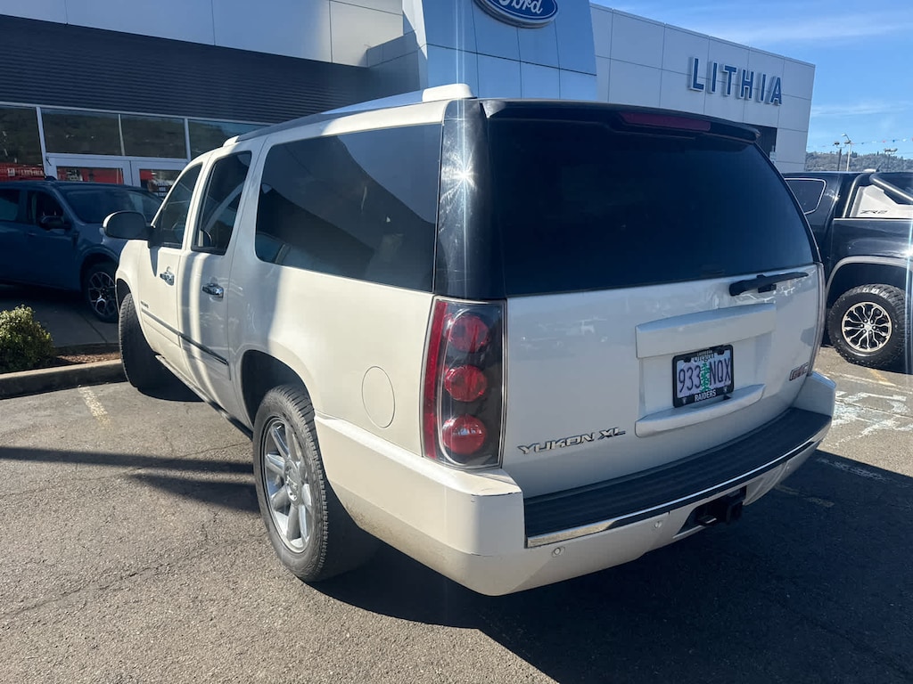 SUN, ENTERTAINMENT AND DESTINATIONS PACKAGE, (CF5) power sunroof, (DD8) inside rearview auto-dimming mirror, (UYS) Audio system with navigation and (U42) rear seat DVD entertainment system and (DNU) third row DVD screen, ENTERTAINMENT SYSTEM, REAR SEAT DVD PLAYER with remote control, overhead display, 2 sets of 2-channel wireless infrared headphones and auxiliary audio/video input jacks, ASSIST STEPS, POWER-RETRACTABLE, ENGINE, VORTEC 6.2L VARIABLE VALVE TIMING V8 SFI, ACTIVE FUEL MANAGEMENT with E85 FlexFuel capability (403 hp [300.5 kW] @ 5700 rpm, 417 lb-ft of torque [562.9 N-m] @ 4300 rpm) (STD), TRANSMISSION, 6-SPEED AUTOMATIC, HEAVY-DUTY, ELECTRONICALLY CONTROLLED with overdrive and tow/haul mode, tap up/tap down shifting (STD), AUDIO SYSTEM WITH NAVIGATION AM/FM/SiriusXM stereo with CD player, 7-inch touch-screen Color Interface Display (CID), 30 gig usable Hard Drive storage space, with navigation and voice recognition, USB port, MP3 playback capability, Radio Data System (RDS), speed-compensated volume, time shift recording capability, available SiriusXM weather service and rear vision camera (STD). 2014 GMC Yukon XL with White Diamond Tricoat exterior and Cocoa/Light Cashmere interior features a 8 Cylinder Engine with 403 HP at 5700 RPM*. Non-Smoker vehicle
