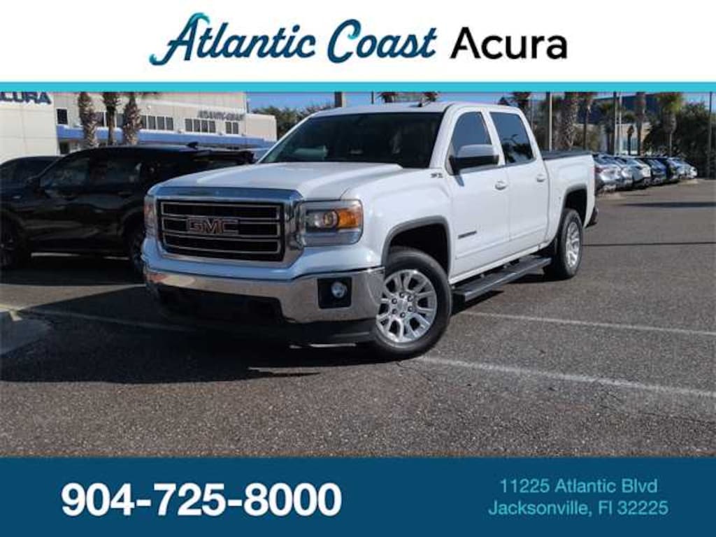 This 2015 GMC Sierra 1500 SLE in Summit White, features Off-Road Suspension Package (Hill Descent Control), Preferred Equipment Group 3SA (150 Amp Alternator, 4.2 Diagonal Color Display Driver Info Center, Body Color Bodyside Moldings, Body Color Door Handles, Body Color Power-Adjustable Heated Outside Mirrors, Body-Color Mirror Caps, Chrome Grille Surround, Color-Keyed Carpeting w/Rubberized Vinyl Floor Mats, Deep-Tinted Glass, Driver & Front Passenger Illuminated Vanity Mirrors, Electronic Autotrac Transfer Case, EZ Lift & Lower Tailgate, Front Frame-Mounted Black Recovery Hooks, Heavy-Duty Rear Locking Differential, Leather Wrapped Steering Wheel w/Cruise Controls, LED Cargo Box Lighting, Manual Tilt Wheel Steering Column, OnStar 6 Months Directions & Connections Plan, OnStar w/4G LTE, Power Windows w/Driver Express Up & Down, Rear 60/40 Folding Bench Seat (Folds Up), Rear Vision Camera w/Dynamic Guide Lines, Rear Wheelhouse Liners, Remote Keyless Entry, Single Slot CD/MP3 Player, Single-Zone Air Conditioning, and Steering Wheel Audio Controls), SLE Value Package (10-Way Power Drivers Seat Adjuster, 110-Volt AC Power Outlet, Dual-Zone Automatic Climate Control, Electric Rear-Window Defogger, Front Halogen Fog Lamps, Remote Vehicle Starter System, Theft Deterrent System (Unauthorized Entry), and Universal Home Remote), Trailering Equipment, 3.42 Rear Axle Ratio, 4-Wheel Disc Brakes, 40/20/40 Front Split Bench Seat, 6 Speakers, ABS brakes, Air Conditioning, Alloy wheels, AM/FM radio: SiriusXM, Auxiliary External Transmission Oil Cooler, Bodyside moldings, Brake assist, Bumpers: chrome, CD player, Chrome Front Bumper, Chrome Rear Bumper, Cloth Seat Trim, Compass, Delay-off headlights, Driver door bin, Driver vanity mirror, Dual front impact airbags, Dual front side impact airbags, Electronic Stability Control, Emergency communication system: OnStar Directions & Connections, Exterior Parking Camera Rear, Front anti-roll bar, Front Center Armrest w/Storage, Front License Plate Kit, Front reading lights, Front wheel independent suspension, Fully automatic headlights, Heated door mirrors, Heavy Duty Suspension, Illuminated entry, Low tire pressure warning, Manual Tilt/Telescoping Steering Column, Occupant sensing airbag, Outside temperature display, Overhead airbag, Overhead console, Panic alarm, Passenger door bin, Passenger vanity mirror, Power door mirrors, Power steering, Power windows, Premium audio system: IntelliLink, Radio data system, Radio: AM/FM Stereo w/8 Diagonal Color Touch Screen, Rear Bumper Cornersteps, Rear reading lights, Rear seat center armrest, Rear step bumper, Remote keyless entry, SiriusXM Satellite Radio, Speed control, Speed-sensing steering, Split folding rear seat, Steering wheel mounted audio controls, Tachometer, Tilt steering wheel, Traction control, Trip computer, Variably intermittent wipers, Voltmeter, Wheels: 17 x 8 Bright Machined Aluminum, and Wheels: 18 x 8.5 Bright Machined Aluminum: