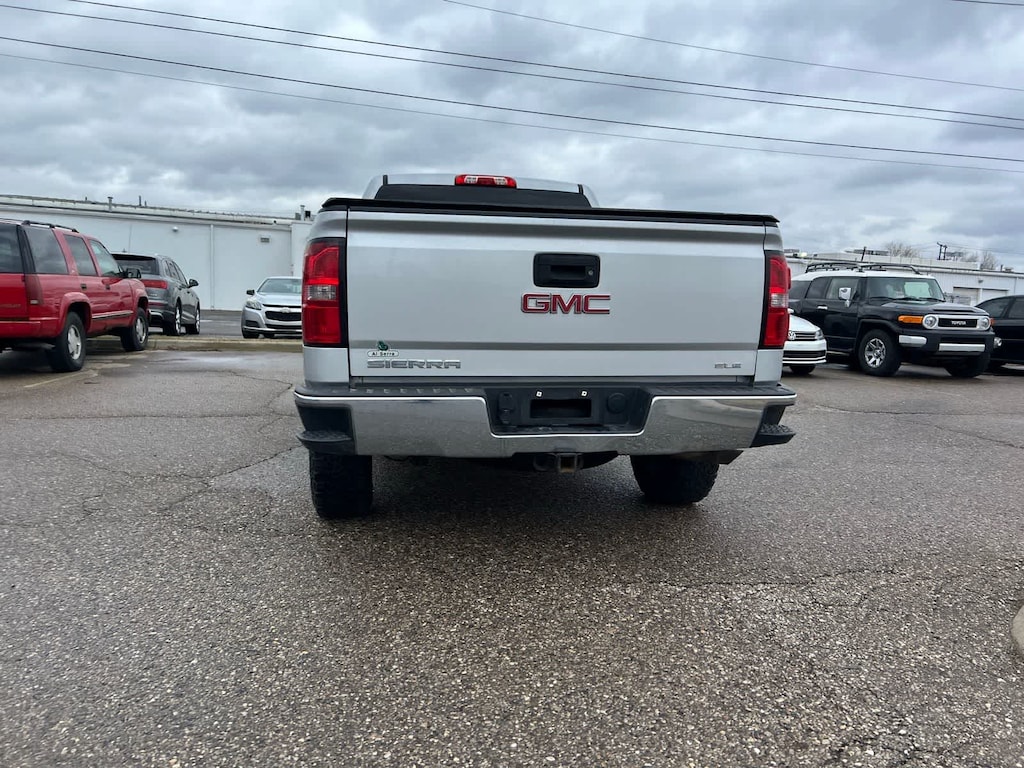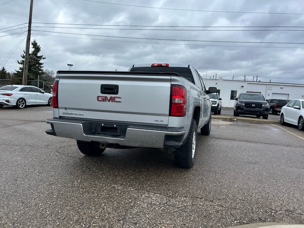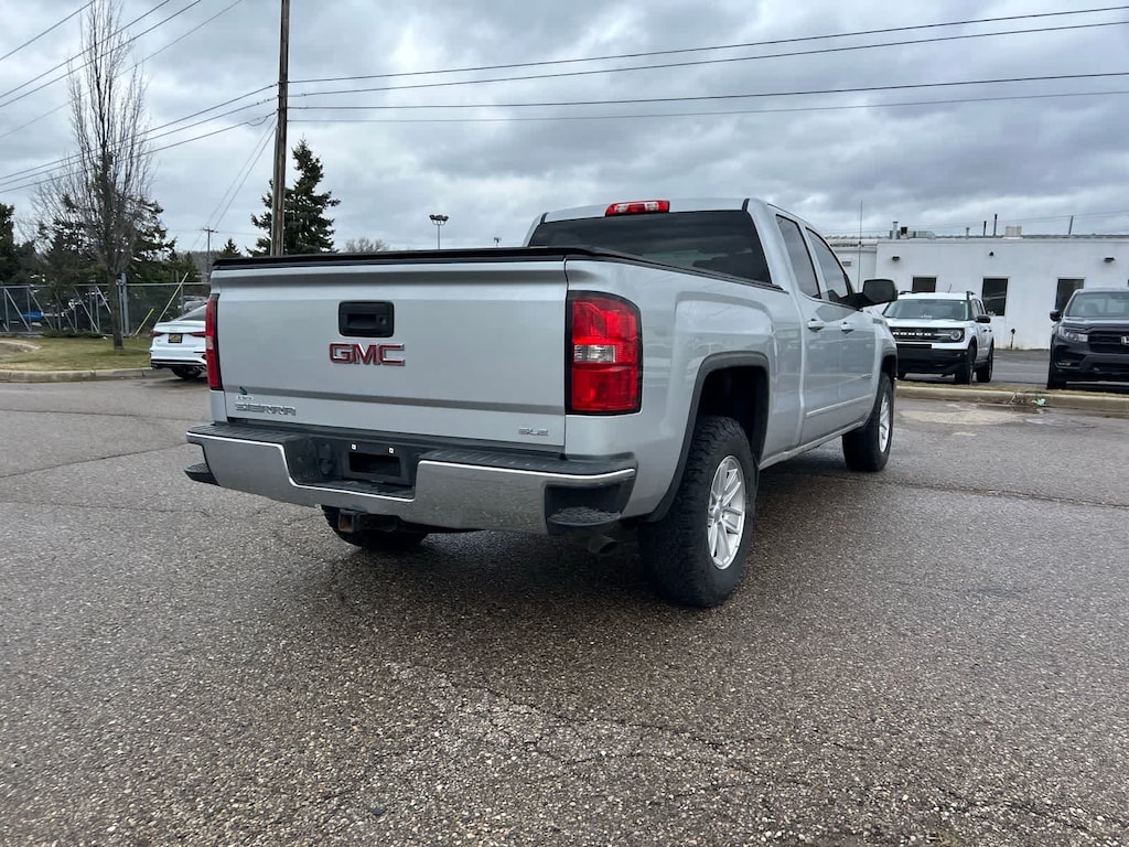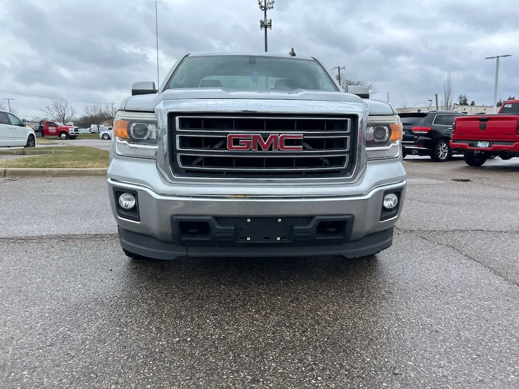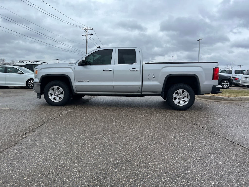 A stand-out among its peers, our Accident Free 2015 GMC Sierra 1500 SLE Double Cab 4X4 is presented in beautiful Quicksilver Metallic. Powered by a 5.3 Liter EcoTec3 V8 that provides 355hp with a tough 6 Speed Automatic transmission with Tow/Haul mode to provide towing capability. This Four Wheel Drive team helps you achieve nearly 22mpg on the highway and, paired with coil-over-shock front suspension, offers a controlled ride that is the ultimate in comfort and handling! Our hardworking Sierra 1500 SLE has a massive grille, distinct CornerStep chrome rear bumpers, a tow hitch receiver, a tonneau cover, and an EZ Lift and Lower locking tailgate.
