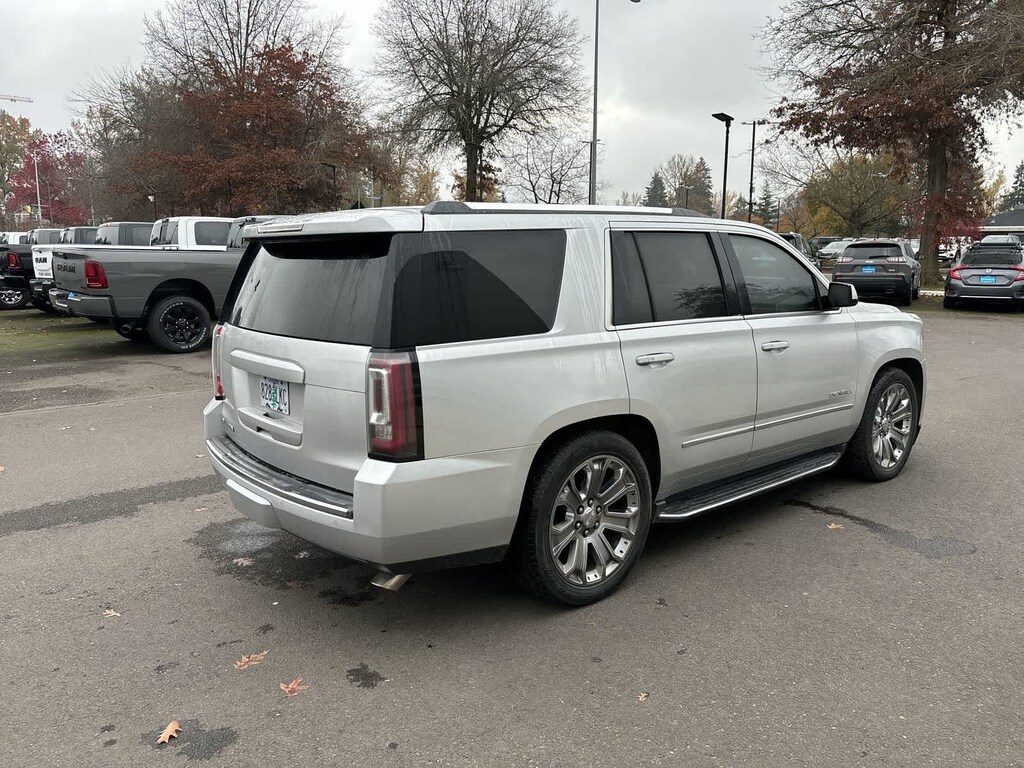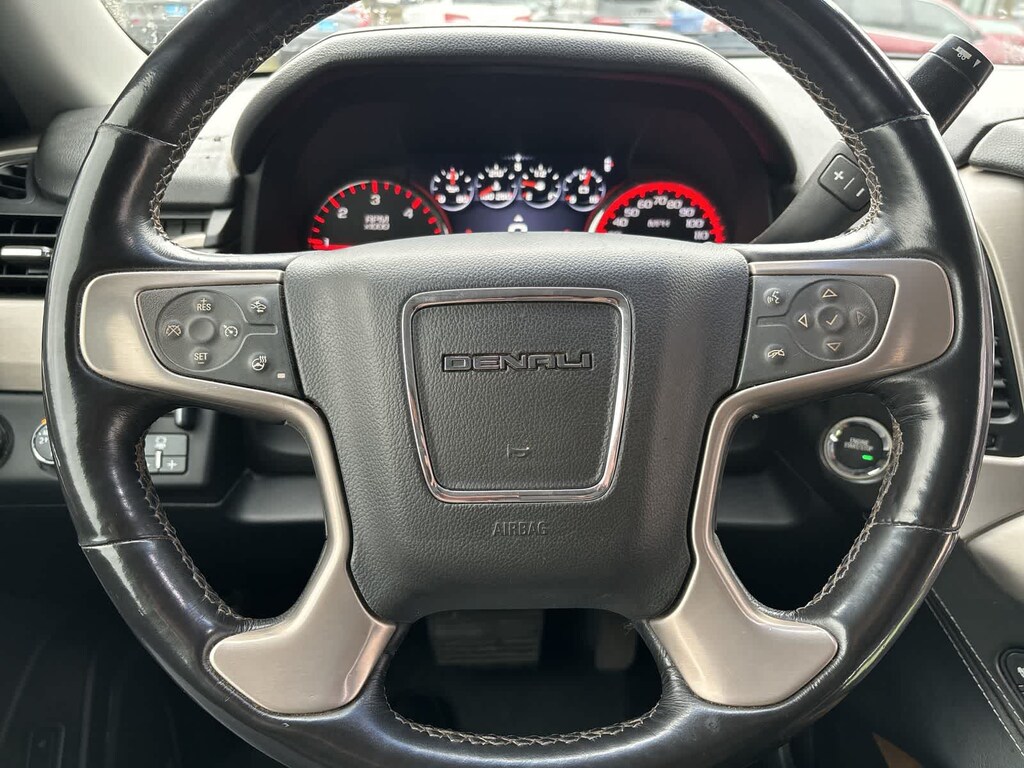 OPEN ROAD PACKAGE, (CF5) power sunroof, (U42) rear seat entertainment system and on SLT (IO6) Audio system with navigation, ENTERTAINMENT SYSTEM, REAR SEAT BLU-RAY/DVD. with remote control, overhead display, four 2-channel wireless infrared headphones and auxiliary audio/video input jacks/SD and USB slots, includes second screen for third row passengers, ENHANCED SECURITY PACKAGE includes (UTR) self-powered horn, (UTV) interior movement and (UTU) vehicle inclination sensors, door lock shields and glass break sensors in rear quarter glass and liftgate window; removes sunglass holder and conversation mirror from overhead console, AUDIO SYSTEM, 8 DIAGONAL COLOR TOUCH SCREEN NAVIGATION WITH INTELLILINK includes New text message alerts and Siri Eyes Free functionality through voice command, AM/FM/SiriusXM/HD with USB ports, auxiliary jack, SD card slot, Bluetooth® streaming audio for music and most phones, hands-free smartphone integration, Pandora Internet radio and voice-activated technology for radio and phone, and an articulating screen with hidden storage. Includes 5 USB ports, 1 auxiliary jack and 1 SD card reader (STD), ENGINE, 6.2L ECOTEC3 V8 with Active Fuel Management, Direct Injection and Variable Valve Timing, includes aluminum block construction (420 hp [313 kW] @ 5600 rpm, 460 lb-ft of torque [624 N-m] @ 4100 rpm) (STD), TRANSMISSION, 8-SPEED AUTOMATIC (STD). GMC Denali with Quicksilver Metallic exterior and Jet Black interior features a 8 Cylinder Engine with 420 HP at 5600 RPM*.