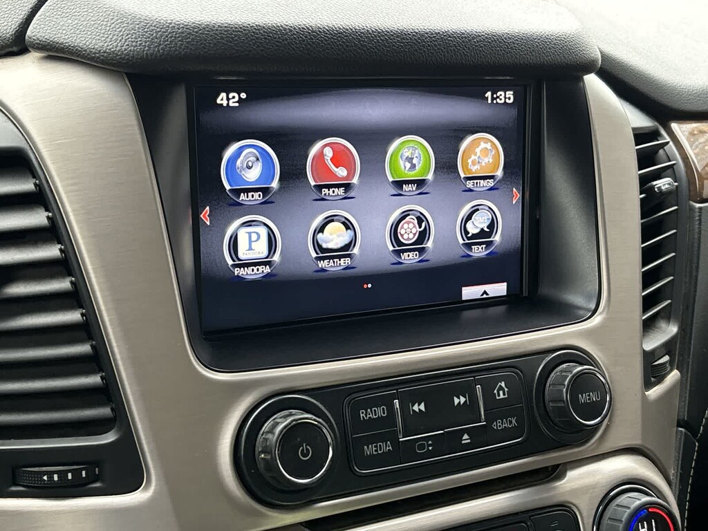 Denali trim. DVD Entertainment System, Heated Leather Seats, 3rd Row Seat, Navigation, 4x4, Captains Chairs, Alloy Wheels, Trailer Hitch, AUDIO SYSTEM, 8 DIAGONAL COLOR TOUCH SCREEN NAVIGATION WITH INTELLILINK, ENHANCED SECURITY PACKAGE.