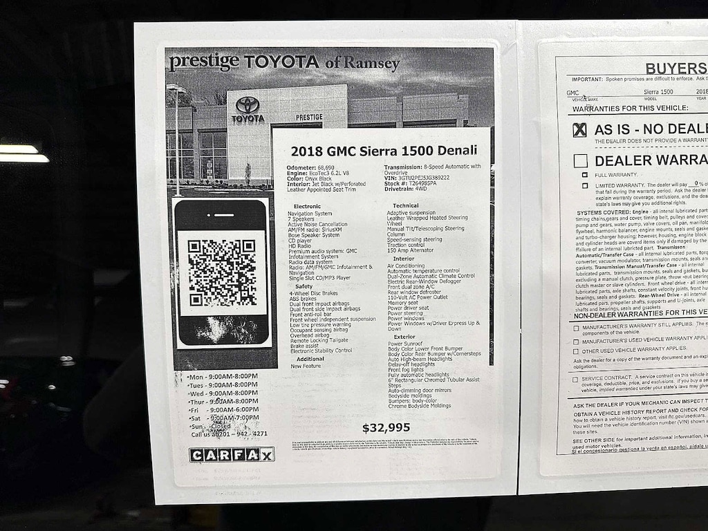 This 2018 GMC Sierra 1500 Denali will not make it to the weekend!! CALL NOW to reserve your test drive!! (844) 838-7075 Please Visit www.PrestigeToyota.com for further details. Price does not include licensing costs, registration fees, taxes and dealer doc fee of $999 which are to be paid by the consumer.