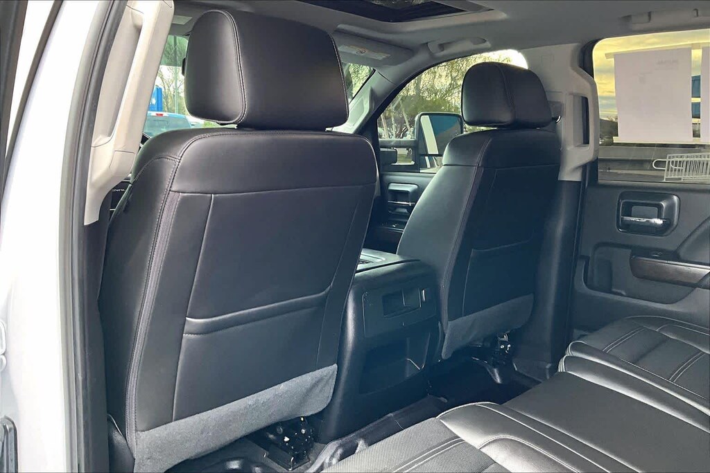 SUNROOF, POWER, GOOSENECK / 5TH WHEEL PREP PACKAGE -- HITCH PLATFORM TO ACCEPT GOOSENECK OR FIFTH WHEEL HITCH. Includes Hitch platform with tray to accept ball and drilled box holes with caps installed, box mounted 7-pin trailer harness (similar to (UY2) harness). LPO, ALL-WEATHER FLOOR LINER, SEATS, FRONT FULL-FEATURE LEATHER-APPOINTED BUCKET WITH (KA1) HEATED SEAT CUSHIONS AND SEAT BACKS. Includes 12-way power driver and front passenger seat adjusters, including 4-way power lumbar control, 2-position driver memory, adjustable head restraints, (D07) floor console and storage pockets and (K4C) wireless charging (STD), AUDIO SYSTEM, 8 DIAGONAL COLOR TOUCH SCREEN NAVIGATION WITH GMC INFOTAINMENT SYSTEM, AM/FM/SIRIUSXM, HD RADIO with USB ports, auxiliary jack, Bluetooth® streaming audio for music and most phones, Pandora Internet radio and voice-activated technology for radio and phone (STD), ENGINE, DURAMAX 6.6L TURBO-DIESEL V8, B20-DIESEL COMPATIBLE (445 hp [332 kW] @ 2800 rpm, 910 lb-ft of torque [1220 Nm] @ 1600 rpm) Includes capped fuel fill, (K40) exhaust brake and (K05) engine block heater. TRANSMISSION, ALLISON 1000 6-SPEED AUTOMATIC, ELECTRONICALLY CONTROLLED with overdrive, electronic engine grade braking and tow/haul mode. GMC Denali with White Frost Tricoat exterior and Jet Black interior features a 8 Cylinder Engine with 445 HP at 2800 RPM*.