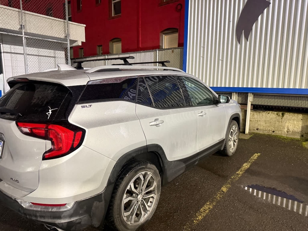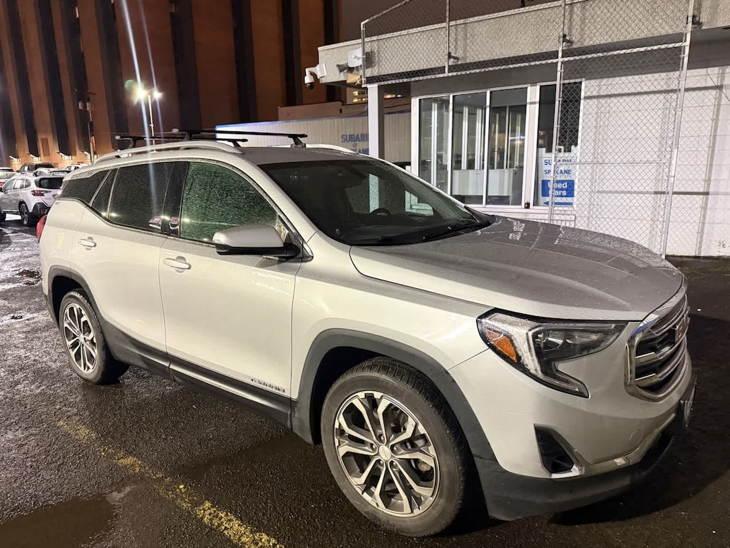 Clean CARFAX. Quicksilver Metallic 2018 GMC Terrain SLT AWD 9-Speed Automatic 2.0L Turbocharged AWD, 2 USB Data Ports, 2 USB Data Ports w/Auxiliary Input Jack, 4-Way Manual Front Passenger Seat, 4-Wheel Antilock 4-Wheel Disc Brakes, 4-Wheel Disc Brakes, 6 Speakers, 6-Speaker Audio System Feature, 8-Way Power Driver Seat Adjuster, ABS brakes, Air Conditioning, Alloy wheels, AM/FM radio: SiriusXM, Apple CarPlay/Android Auto, Auto-dimming door mirrors, Auto-dimming Rear-View mirror, Automatic temperature control, Bluetoothî For Phone, Brake assist, Bumpers: body-color, Compass, Delay-off headlights, Driver & Front Passenger Heated Seats, Driver door bin, Driver vanity mirror, Dual Exhaust w/Bright Tips, Dual front impact airbags, Dual front side impact airbags, Electronic Stability Control, Emergency communication system: OnStar Guidance, Exterior Parking Camera Rear, Four wheel independent suspension, Front anti-roll bar, Front Bucket Seats, Front Center Armrest, Front dual zone A/C, Front fog lights, Front reading lights, Fully automatic headlights, Heated door mirrors, Heated front seats, High-Intensity Discharge Headlights, Illuminated entry, License Plate Front Mounting Package, Low tire pressure warning, Occupant sensing airbag, Outside temperature display, Overhead airbag, Overhead console, Panic alarm, Passenger door bin, Passenger vanity mirror, Perforated Leather-Appointed Seat Trim, Power door mirrors, Power Driver Lumbar Control, Power driver seat, Power steering, Power windows, Preferred Equipment Group 4SA, Radio data system, Radio: GMC Infotainment Audio System w/8 Display, Rear anti-roll bar, Rear seat center armrest, Rear window defroster, Rear window wiper, Remote keyless entry, Roof Rack Cross Rails (LPO), Roof rack: rails only, SD Card Reader, Security system, SiriusXM Satellite Radio, Speed control, Speed-sensing steering, Split folding rear seat, Spoiler, Steering wheel mounted audio controls, Tachometer, Telescoping steering wheel, Tilt steering wheel, Traction control, Trip computer, Turn signal indicator mirrors, Variably intermittent wipers, Wheels: 18 x 7 Machined Aluminum w/Gray Accents, Wheels: 19 x 7.5 Machined Aluminum w/Gray Accents, AWD.