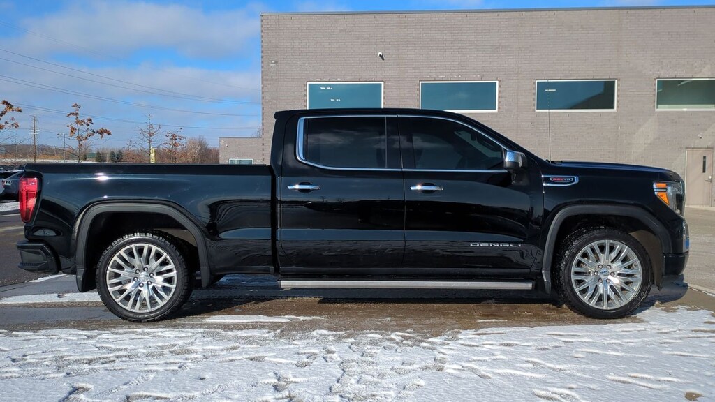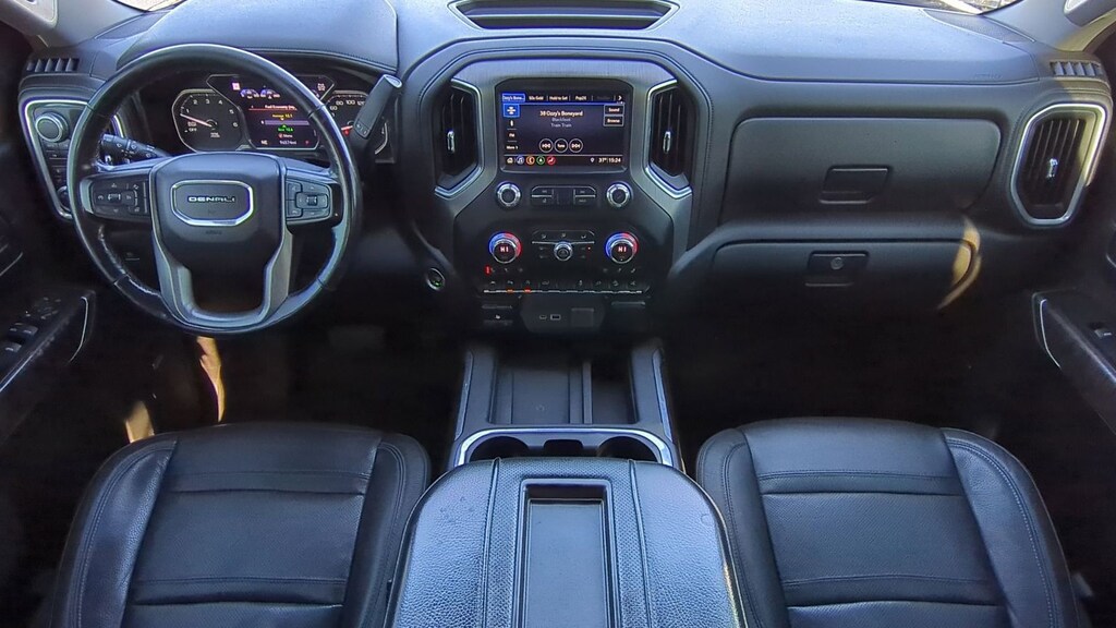 Clean CARFAX. 2019 GMC Sierra 1500 Denali Is nicely equipped with Driver Alert Package I (Lane Change Alert w/Side Blind Zone Alert, Perimeter Lighting, Rear Cross Traffic Alert, and Ultrasonic Front & Rear Park Assist), Trailering Package, 10-Speed Automatic, 4WD, Jet Black Leather, 10-Way Power Driver Seat Adjuster w/Lumbar, 10-Way Power Passenger Seat Adjuster w/Lumbar, 12-Volt Rear Auxiliary Power Outlet, 120-Volt Bed Mounted Power Outlet, 120-Volt Instrument Panel Power Outlet, 170 Amp Alternator, 2 USB Ports, 2 USB Ports (1st Row), 3.23 Rear Axle Ratio, 4-Wheel Disc Brakes, 7 Speakers, ABS brakes, Adaptive Ride Control Suspension, Adaptive suspension, Air Conditioning, Alloy wheels, AM/FM radio: SiriusXM, Apple CarPlay/Android Auto, Auto-dimming door mirrors, Auto-dimming Rear-View mirror, Automatic temperature control, Auxiliary External Transmission Oil Cooler, Brake assist, Bumpers: body-color, Chrome Assist Steps, Chrome Recovery Hooks, Color-Keyed Carpeting Floor Covering, Compass, Deep-Tinted Glass, Delay-off headlights, Driver door bin, Driver Memory, Driver vanity mirror, Dual front impact airbags, Dual front side impact airbags, Electric Rear-Window Defogger, Electrical Lock Control Steering Column, Electronic Stability Control, Floor Mounted Console, Forge Perforated Leather-Appointed Seat Trim, Front anti-roll bar, Front Bucket Seats, Front Center Armrest, Front dual zone A/C, Front fog lights, Front reading lights, Front wheel independent suspension, Fully automatic headlights, Garage door transmitter, Genuine wood console insert, Genuine wood door panel insert, GMC 4G LTE, GMC Connected Access, HD Radio, HD Rear Vision Camera, Heated 2nd Row Outboard Seats, Heated door mirrors, Heated Driver & Front Passenger Seating, Heated front seats, Heated rear seats, Heated steering wheel, Heavy-Duty Rear Locking Differential, High-Capacity Air Filter, Hill Descent Control, Hitch Guidance, Hitch Guidance w/Hitch View, Illuminated entry, In-Vehicle Trailering App, Integrated Trailer Brake Controller, Keyless Open & Start, LED Cargo Area Lighting, Low tire pressure warning, Manual Tilt-Wheel & Telescoping Steering Column, Memory seat, Navigation System, Occupant sensing airbag, OnStar & GMC Connected Services Capable, Outside temperature display, Overhead airbag, Overhead console, Panic alarm, Passenger door bin, Passenger vanity mirror, Power Door Locks, Power door mirrors, Power driver seat, Power Front Passenger Windows w/Express Up/Down, Power Front Windows w/Driver Express Up/Down, Power passenger seat, Power Rear Windows w/Express Down, Power Sliding Rear Window w/Rear Defogger, Power steering, Power windows, Premium audio system: GMC Infotainment System, Premium Bose 7-Speaker Sound System, Radio data system, Radio: Premium GMC Infotainment Sys w/Navigation, Rear Dual USB Charging-Only Ports, Rear reading lights, Rear seat center armrest, Rear step bumper, Rear Wheelhouse Liners, Rear window defroster, Remote keyless entry, Remote Vehicle Starter System, Safety Alert Seat, Security system, Signature Denali Grille, SiriusXM Radio, Speed control, Speed-sensing steering, Split folding rear seat, Spray-On Pickup Bed Liner w/Denali Logo, Steering Wheel Audio Controls, Steering wheel mounted audio controls, Tachometer, Telescoping steering wheel, Theft Deterrent System (Unauthorized Entry), Tilt steering wheel, Traction control, Trip computer, Universal Home Remote, Variably intermittent wipers, Ventilated Driver & Front Passenger Seats, Ventilated front seats, Voltmeter, Wheels: 20" x 9" Multi-Dimensional Polished Alum, and Wireless Charging.