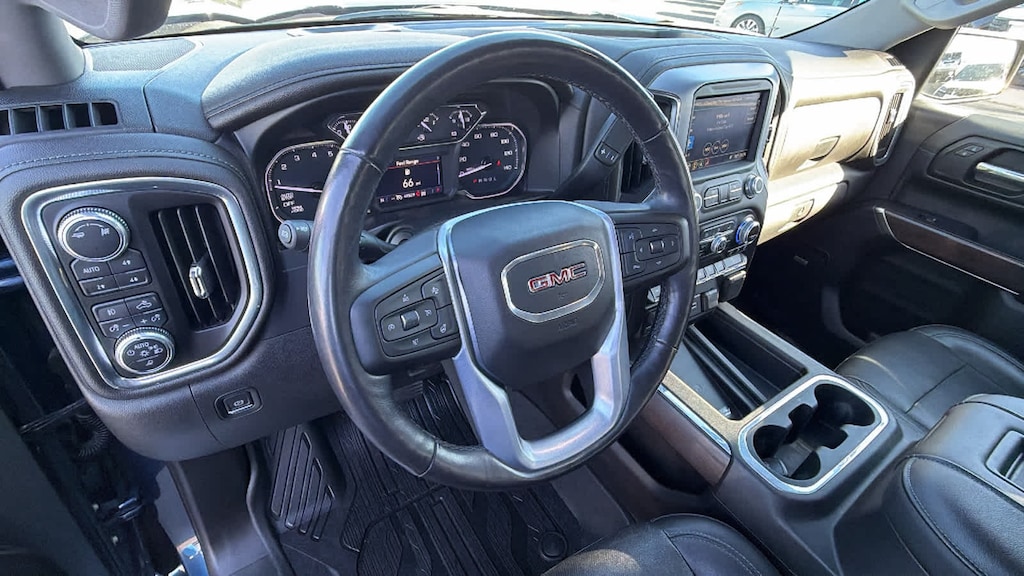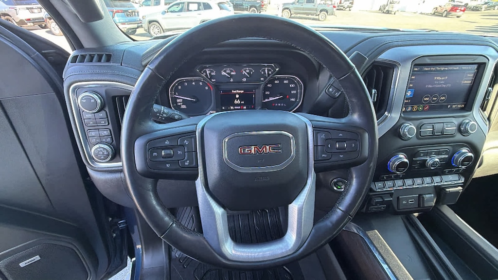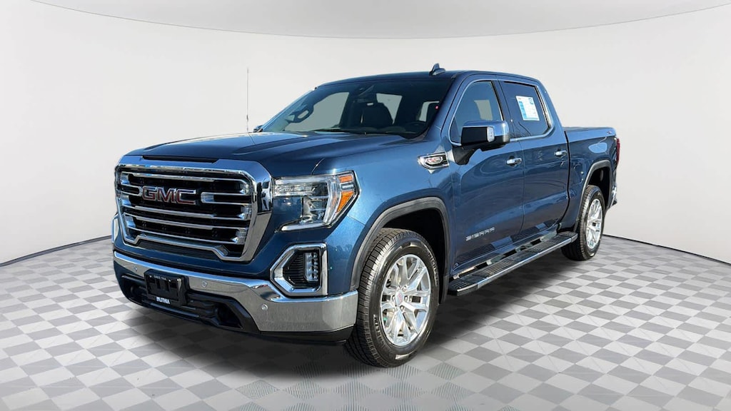SLT PREMIUM PLUS PACKAGE includes (PCY) SLT Convenience Package, (PDY) SLT Preferred Package, (PQB) Driver Alert Package I, (PDJ) Driver Alert Package II, (NZM) 20" Polished aluminum wheels, (PTT) Trailer Tire Pressure Monitor System, (BVT) Chrome assist steps and (CGN) spray-on bedliner. ENGINE, 6.2L ECOTEC3 V8 (420 hp [313 kW] @ 5600 rpm, 460 lb-ft of torque [624 Nm] @ 4100 rpm); featuring all-new Dynamic Fuel Management that enables the engine to operate in 17 different patterns between 2 and 8 cylinders, depending on demand, to optimize power delivery and efficiency, SLT CONVENIENCE PACKAGE includes (A50) bucket seats with (D07) center console, (KQV) ventilated front seats, (A48) rear sliding power window, (UG1) Universal Home Remote, (MCZ) 2 USB ports with auxiliary input; Crew Cab models also include (KA6) rear heated seats, SLT PREFERRED PACKAGE includes (IOT) 8" diagonal Premium GMC Infotainment with navigation, (UQA) Bose Premium Audio System and (K4C) Wireless Charging, DRIVER ALERT PACKAGE I includes (UD5) Front and Rear Park Assist, (UKC) Lane Change Alert with Side Blind Zone Alert and (UFG) Rear Cross Traffic Alert (Includes Perimeter Lighting. Includes (V76) recovery hooks on 2WD models. X31 OFF-ROAD PACKAGE includes Off-Road suspension, (JHD) Hill Descent Control, (NZZ) skid plates, (K47) high-capacity air filter and X31 hard badge Includes (NQH) 2-speed transfer case, (XCK) 265/65R18SL all-terrain, blackwall tires, (N10) dual exhaust. DRIVER ALERT PACKAGE II includes (UEU) Forward Collision Alert, (UHX) Lane Keep Assist/Lane Departure Warning, (UHY) Low Speed Forward Automatic Braking, (UKJ) Front Pedestrian Braking, (TQ5) IntelliBeam headlamps and (UE4) Following Distance Indicator Includes (HS1) Safety Alert Seat. LPO, ALL-WEATHER FLOOR LINER, 1ST AND 2ND ROWS, AUDIO SYSTEM, PREMIUM GMC INFOTAINMENT SYSTEM WITH NAVIGATION AND 8" DIAGONAL COLOR TOUCH-SCREEN, INCLUDES MULTI-TOUCH DISPLAY, AM/FM STEREO Bluetooth® streaming audio for music and most phones; featuring Android Auto® and Apple CarPlay® capability for compatible phones, advanced voice recognition, in-vehicle apps, personalized profiles for infotainment and vehicle settings. Includes greater memory, SEATS, HEATED SECOND ROW OUTBOARD SEATS, TRANSMISSION, 10-SPEED AUTOMATIC, ELECTRONICALLY CONTROLLED with overdrive and tow/haul mode. Includes Cruise Grade Braking and Powertrain Grade Braking. GMC SLT with Pacific Blue Metallic exterior and Jet Black interior features a 8 Cylinder Engine with 420 HP at 5600 RPM*.
