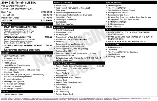 Satin Steel Metallic 2019 GMC Terrain SLE 4D Sport Utility AWD 9-Speed Automatic 1.5L DOHC 24/28 City/Highway MPG