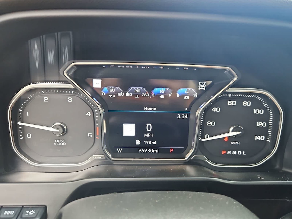 10-Speed Automatic, 4WD, Jet Black Leather, 10-Way Power Driver Seat Adjuster w/Lumbar, 10-Way Power Passenger Seat Adjuster w/Lumbar, 12-Volt Rear Auxiliary Power Outlet, 120-Volt Bed Mounted Power Outlet, 120-Volt Instrument Panel Power Outlet, 2 USB Ports, 2 USB Ports (1st Row), 2-Speed Active Transfer Case, 220 Amps Alternator, 2nd Row Dual USB Charge-Only Ports, 4-Wheel Disc Brakes, 4G LTE Wi-Fi Hotspot Capable, 5th Wheel & Gooseneck Trailer Wiring Provisions, 6 Rectangular Chromed Tubular Assist Steps, 7 Speakers, ABS brakes, Air Conditioning, Alloy wheels, AM/FM radio: SiriusXM, Apple CarPlay/Android Auto, Auto High-beam Headlights, Auto-dimming door mirrors, Auto-dimming Rear-View mirror, Automatic Emergency Braking, Automatic temperature control, Bed View Camera, Bose Premium 7 Speaker Sound System, Brake assist, Bumpers: body-color, Chrome Recovery Hooks, Compass, Compass Located In Instrument Cluster, Deep-Tinted Glass, Delay-off headlights, Denali Ultimate Package, Driver Alert Package I, Driver Alert Package II, Driver door bin, Driver Memory, Driver vanity mirror, Dual front impact airbags, Dual front side impact airbags, Electric Rear-Window Defogger, Electrical Lock Control Steering Column, Electronic Stability Control, Engine Block Heater, Exhaust Brake, Floor-Mounted Center Console, Following Distance Indicator, Forge Perforated Leather-Appointed Front Seat Trim, Forward Collision Alert, Front anti-roll bar, Front Bucket Seats, Front Center Armrest, Front dual zone A/C, Front fog lights, Front License Plate Kit, Front reading lights, Front wheel independent suspension, Fully automatic headlights, Garage door transmitter, Genuine wood console insert, Genuine wood door panel insert, GMC Connected Access Capable, HD Radio, HD Rear Vision Camera, HD Surround Vision w/2 Trailer View Camera Provisions, Heated & Ventilated Front Bucket Seats, Heated 2nd Row Outboard Seats, Heated door mirrors, Heated Driver & Front Outboard Passenger Seats, Heated front seats, Heated rear seats, Heated steering wheel, Heavy-Duty 80 Amp Battery, Hill Descent Control, Hitch Guidance w/Hitch View, Illuminated entry, In-Vehicle Trailering System App, Integrated Trailer Brake Controller, IntelliBeam Automatic High Beam On/Off, Keyless Open & Start, Lane Change Alert w/Side Blind Zone Alert, Lane Departure Warning System, LED Cargo Area Lighting, LED Smoked Amber Roof Marker Lamps, Low tire pressure warning, Manual Tilt-Wheel/Telescoping Steering Column, Memory seat, Multicolor 15 Diagonal Head-Up Display, Navigation System, Occupant sensing airbag, Off-Road Suspension, OnStar & GMC Connected Services Capable, Outside temperature display, Overhead airbag, Overhead console, Panic alarm, Passenger door bin, Passenger vanity mirror, Pickup Box, Polished Exhaust Tip, Power Door Locks, Power door mirrors, Power driver seat, Power Front Passenger Windows w/Express Up/Down, Power passenger seat, Power Rear Windows w/Express Down, Power Sliding Rear Window w/Defogger, Power steering, Power Sunroof, Power windows, Power Windows w/Driver Express Up/Down, Preferred Equipment Group 5SA, Premium audio system: Premium GMC Infotainment System, Radio: Premium GMC Infotainment Sys w/Navigation, Rear Camera Mirror, Rear Cross Traffic Alert, Rear reading lights, Rear seat center armrest,