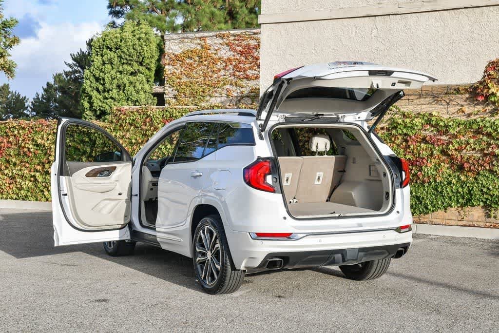 Clean CARFAX. White Frost Tricoat 2020 GMC Terrain Denali FWD 9-Speed Automatic 2.0L Turbocharged 2 USB Data Ports, 2 USB Data Ports w/SD Card Reader, 4-Wheel Disc Brakes, 6-Way Power Front Passenger Seat, 7 Speakers, 8-Way Power Driver Seat Adjuster, Adaptive Cruise Control - Camera, Advanced Safety Package, All-Weather Cargo Mat (LPO), All-Weather Floor Mats, Alloy wheels, AM/FM radio: SiriusXM, Apple CarPlay/Android Auto, Auto-dimming door mirrors, Automatic Parking Assist, Automatic temperature control, Bluetoothî For Phone, Brake assist, Bumpers: body-color, Comfort Package, Denali Premium Package, Driver & Front Passenger Heated Seats, Driver door bin, Driver vanity mirror, Dual front impact airbags, Dual front side impact airbags, Electronic Stability Control, Emergency communication system: OnStar and GMC connected services capable, Exterior Parking Camera Rear, Factory Installed Trailer Hitch, Four wheel independent suspension, Front anti-roll bar, Front Bucket Seats, Front Center Armrest, Front dual zone A/C, Front Passenger 2-Way Power Lumbar, Garage door transmitter, HD Radio, HD Surround Vision, Heated door mirrors, Heated front seats, Heated Rear Outboard Seating Positions, Heated steering wheel, Illuminated entry, Interior Protection Package (LPO), Memory seat, Navigation System, Occupant sensing airbag, Overhead airbag, Overhead console, Panic alarm, Passenger door bin, Passenger vanity mirror, Perforated Leather-Appointed Seat Trim w/Denali Logo, Power door mirrors, Power Driver Lumbar Control, Power driver seat, Power Liftgate, Power passenger seat, Preferred Equipment Group 5SA, Premium 7-Speaker Bose Sound System w/Amplifier, Radio data system, Radio: GMC Infotainment System w/Navigation, Rear anti-roll bar, Rear seat center armrest, Remote keyless entry, Roof rack: rails only, Security system, SiriusXM Radio, Speed control, Speed-sensing steering, Split folding rear seat, Spoiler, Steering wheel mounted audio controls, Telescoping steering wheel, Tilt steering wheel, Trailering Equipment, Turn signal indicator mirrors, Ventilated Driver Seat, Ventilated Front Passenger Seat, Wheels: 19 x 7.5 Ultra-Bright Machined Aluminum.