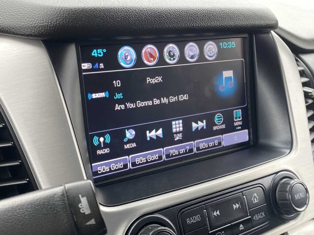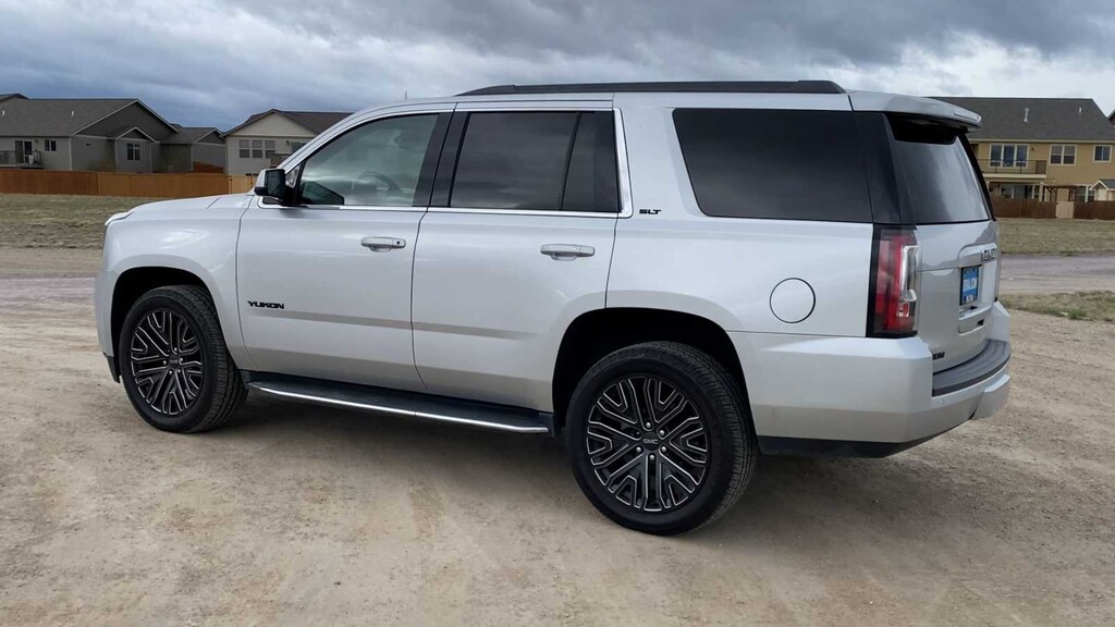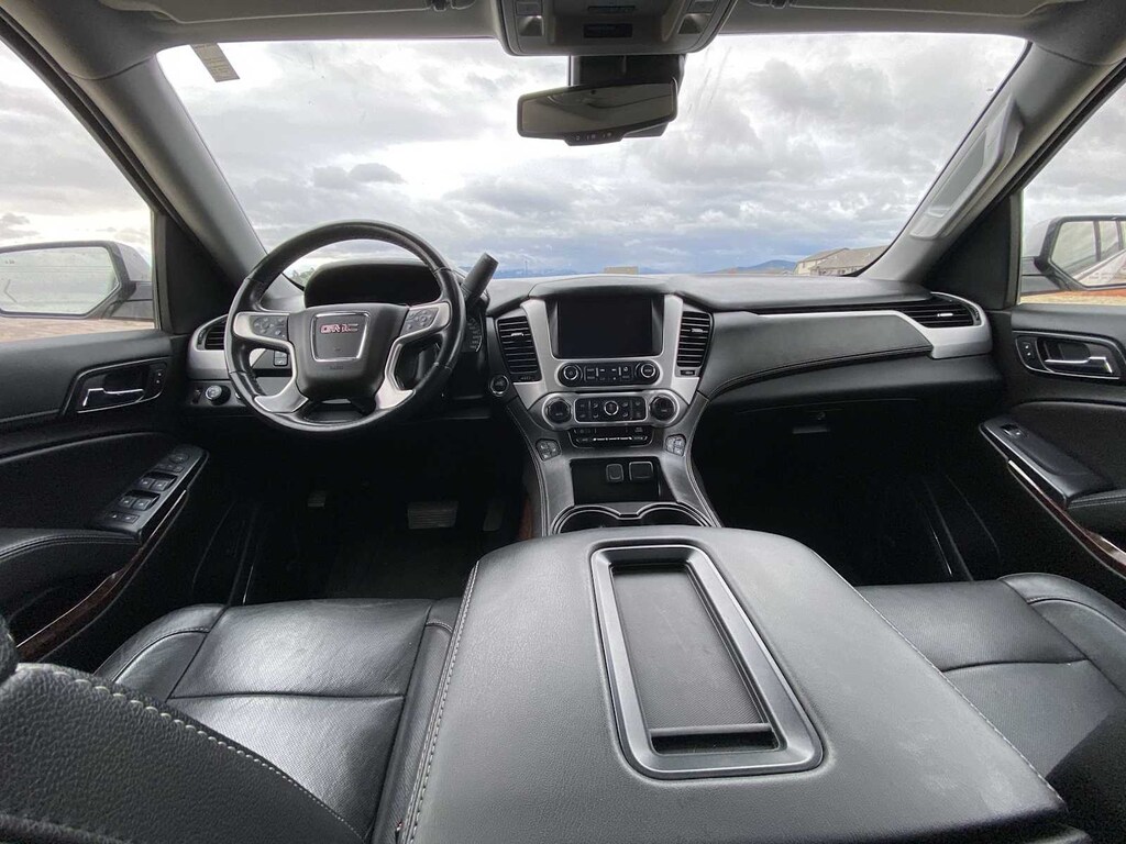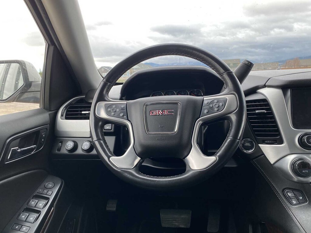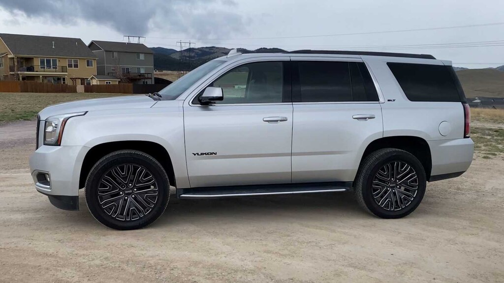 OPEN ROAD PACKAGE, (CF5) power sunroof, (U42) rear seat entertainment system and on SLT (IO6) Audio system with navigation, ENTERTAINMENT SYSTEM, REAR SEAT, BLU-RAY/DVD with remote control, overhead display, Wi-Fi wireless projection capability, two 2-channel wireless digital headphones, auxiliary HDMI/MHL audio/video input and 2 USB ports, AUDIO SYSTEM, 8 DIAGONAL COLOR TOUCH SCREEN NAVIGATION WITH GMC INFOTAINMENT SYSTEM AM/FM/SiriusXM stereo with seek-and-scan and digital clock, includes Bluetooth® streaming audio for music and select phones; voice-activated technology for radio and phone; and Shop. Featuring Apple CarPlay® and Android Auto® capability for compatible phone; 5 USB ports and 1 auxiliary jack, ENGINE, 5.3L ECOTEC3 V8 with Active Fuel Management, Direct Injection and Variable Valve Timing, includes aluminum block construction (355 hp [265 kW] @ 5600 rpm, 383 lb-ft of torque [518 N-m] @ 4100 rpm) (STD), TRANSMISSION, 6-SPEED AUTOMATIC, ELECTRONICALLY CONTROLLED with overdrive, tow/haul mode and tap up/tap down shifting (STD). GMC SLT with Quicksilver Metallic exterior and Jet Black interior features a 8 Cylinder Engine with 355 HP at 5600 RPM*.