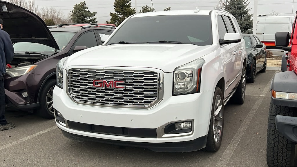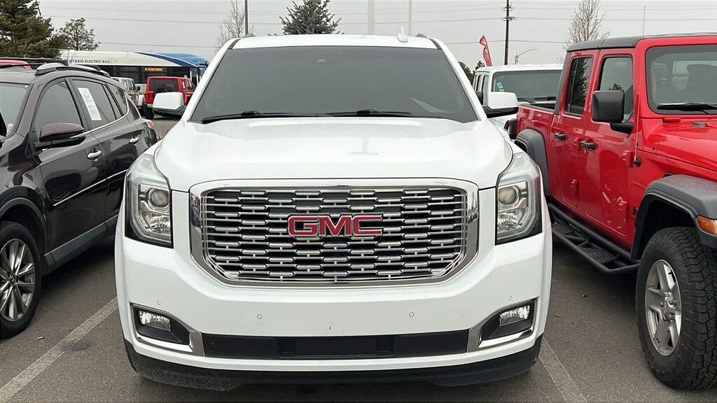 DENALI ULTIMATE PACKAGE includes (PCJ) Open Road Package contents: additional 9 months of SiriusXM Radio and NavTraffic service, (CF5) power sunroof, (U42) rear seat entertainment system, (UTT) Enhanced Security Package contents: (UTR) self-powered horn, (UTV) interior movement and (UTU) vehicle inclination sensors, (BRS) power-retractable assist steps, (Y66) Adaptive Cruise Control - Advanced with (UGN) Automatic Emergency Braking, (JB1) 4-wheel antilock, 4-wheel disc brakes, (SII) 22 bright aluminum wheels with Midnight Silver premium paint and (SFE) wheel locks, LPO, ENTERTAINMENT SYSTEM, REAR SEAT, BLU-RAY/DVD with remote control, overhead display, Wi-Fi wireless projection capability, two 2-channel wireless digital headphones, auxiliary HDMI/MHL audio/video input and 2 USB ports, WHEELS, 22 X 9 (55.9 CM X 22.9 CM) 6-SPOKE CHROME MULTI-FEATURED DESIGN, ENHANCED SECURITY PACKAGE body security content, includes (UTR) self-powered horn, (UTV) interior movement and (UTU) vehicle inclination sensors, door and liftgate lock shields and glass break sensors in rear quarter glass and liftgate window, removes sunglass holder and conversation mirror from overhead console, AUDIO SYSTEM, 8 DIAGONAL COLOR TOUCH SCREEN NAVIGATION WITH GMC INFOTAINMENT SYSTEM AM/FM/SiriusXM stereo with seek-and-scan and digital clock, includes Bluetooth® streaming audio for music and select phones; voice-activated technology for radio and phone; and Shop. Featuring Apple CarPlay® and Android Auto® capability for compatible phone; 5 USB ports and 1 auxiliary jack (STD), ENGINE, 6.2L ECOTEC3 V8 with Active Fuel Management, Direct Injection and Variable Valve Timing, includes aluminum block construction (420 hp [313 kW] @ 5600 rpm, 460 lb-ft of torque [624 N-m] @ 4100 rpm) (STD), TRANSMISSION, 10-SPEED AUTOMATIC electronically controlled with overdrive, tow/haul mode and tap up/tap down shifting (STD). GMC Denali with Summit White exterior and Cocoa/Dark Atmosphere interior features a 8 Cylinder Engine with 420 HP at 5600 RPM*.
