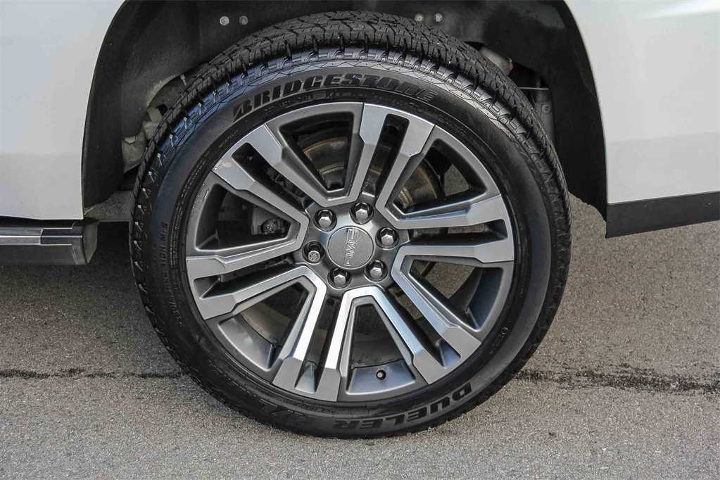 OPEN ROAD PACKAGE, (CF5) power sunroof, (U42) rear seat entertainment system and on SLT (IO6) Audio system with navigation, WHEELS, 22 X 8.5 (55.9 CM X 21.6 CM) BRIGHT ALUMINUM with Midnight Silver premium paint, ASSIST STEPS, POWER-RETRACTABLE with bright accent strip and perimeter lighting, ENTERTAINMENT SYSTEM, REAR SEAT, BLU-RAY/DVD with remote control, overhead display, Wi-Fi wireless projection capability, two 2-channel wireless digital headphones, auxiliary HDMI/MHL audio/video input and 2 USB ports, ADAPTIVE CRUISE CONTROL - ADVANCED with Automatic Emergency Braking, radar based system automatically adjusts speed to maintain preset following gap, ENHANCED SECURITY PACKAGE body security content, includes (UTR) self-powered horn, (UTV) interior movement and (UTU) vehicle inclination sensors, door and liftgate lock shields and glass break sensors in rear quarter glass and liftgate window, removes sunglass holder and conversation mirror from overhead console, AUDIO SYSTEM, 8 DIAGONAL COLOR TOUCH SCREEN NAVIGATION WITH GMC INFOTAINMENT SYSTEM AM/FM/SiriusXM stereo with seek-and-scan and digital clock, includes Bluetooth® streaming audio for music and select phones; voice-activated technology for radio and phone; and Shop. Featuring Apple CarPlay® and Android Auto® capability for compatible phone; 5 USB ports and 1 auxiliary jack (STD), ENGINE, 6.2L ECOTEC3 V8 with Active Fuel Management, Direct Injection and Variable Valve Timing, includes aluminum block construction (420 hp [313 kW] @ 5600 rpm, 460 lb-ft of torque [624 N-m] @ 4100 rpm) (STD), TRANSMISSION, 10-SPEED AUTOMATIC electronically controlled with overdrive, tow/haul mode and tap up/tap down shifting (STD). 4x4, Onboard Communications System, Remote Trunk Release, Keyless Entry, Privacy Glass, Steering Wheel Controls, Electronic Stability Control.