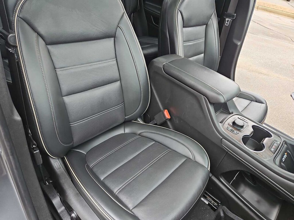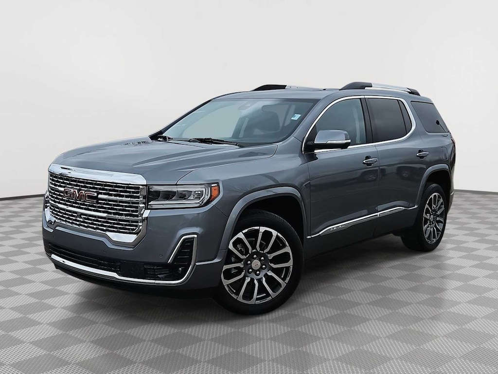 CARFAX One-Owner. Clean CARFAX. Satin Steel Metallic FWD, Jet Black Leather. This Acadia Denali is nicely equipped with Denali Technology Package (Adaptive Cruise Control, Enhanced Automatic Emergency Braking, HD Surround Vision, Rear Camera Mirror, and Rear Camera Mirror Washer), Floor Liner Package (LPO) (1st & 2nd Row All-Weather Floor Liner (LPO), 3rd Row All-Weather Floor Liner (LPO), and Integrated Cargo Liner (LPO)), Preferred Equipment Group 5SA (Electronic Cruise Control w/Set & Resume Speed), FWD, Jet Black Leather, 20 Ultra Bright Machined Aluminum Wheels, 3.49 Final Drive Axle Ratio, 3rd row seats: split-bench, 4-Wheel Disc Brakes, 6-Passenger (2-2-2 Seating Configuration), 8 Speakers, 8-Way Power Driver Seat Adjuster, 8-Way Power Passenger Seat Adjuster, ABS brakes, Air Conditioning, Alloy wheels, AM/FM radio: SiriusXM with 360L, Apple CarPlay/Android Auto, Auto High-beam Headlights, Auto-dimming door mirrors, Auto-dimming Rear-View mirror, Automatic temperature control, Bose Premium 8-Speaker Audio System Feature, Brake assist, Bumpers: body-color, Compass, Delay-off headlights, Driver door bin, Driver vanity mirror, Dual front impact airbags, Dual front side impact airbags, Dual SkyScape 2-Panel Power Sunroof, Electronic Stability Control, Emergency communication system: OnStar and GMC connected services capable, Four wheel independent suspension, Front anti-roll bar, Front Bucket Seats, Front Center Armrest, Front dual zone A/C, Front fog lights, Front License Plate Bracket, Front reading lights, Fully automatic headlights, Garage door transmitter, HD Radio, Heads-Up Display, Heated & Ventilated Driver & Front Passenger Seats, Heated door mirrors, Heated Driver & Front Passenger Seats, Heated front seats, Heated rear seats, Heated steering wheel, Illuminated entry, Knee airbag, Low tire pressure warning, Memory seat, Navigation System, Occupant sensing airbag, Outside temperature display, Overhead airbag, Overhead console, Panic alarm, Passenger door bin, Passenger vanity mirror, Perforated Leather-Appointed Seat Trim, Power door mirrors, Power Driver Lumbar Control Seat Adjuster, Power driver seat, Power Liftgate, Power Passenger Lumbar Control Seat Adjuster, Power passenger seat, Power steering, Power windows, Premium audio system: GMC Infotainment System, Radio data system, Radio: AM/FM 8 Diagonal Multi-Touch Navigation, Rear air conditioning, Rear anti-roll bar, Rear reading lights, Rear window defroster, Rear window wiper, Remote keyless entry, Roof rack: rails only, Security system, SiriusXM w/360L, Speed control, Speed-sensing steering, Spoiler, Steering wheel memory, Steering wheel mounted audio controls, Tachometer, Telescoping steering wheel, Tilt steering wheel, Traction control, Trip computer, Turn signal indicator mirrors, Variably intermittent wipers, Ventilated front seats, Voltmeter, and Wireless Apple CarPlay/Wireless Android Auto. Price does not include licensing costs, registration fees, taxes and dealer doc fee of $899.50 which are to be paid by the consumer. Mileage is EPA Estimated.