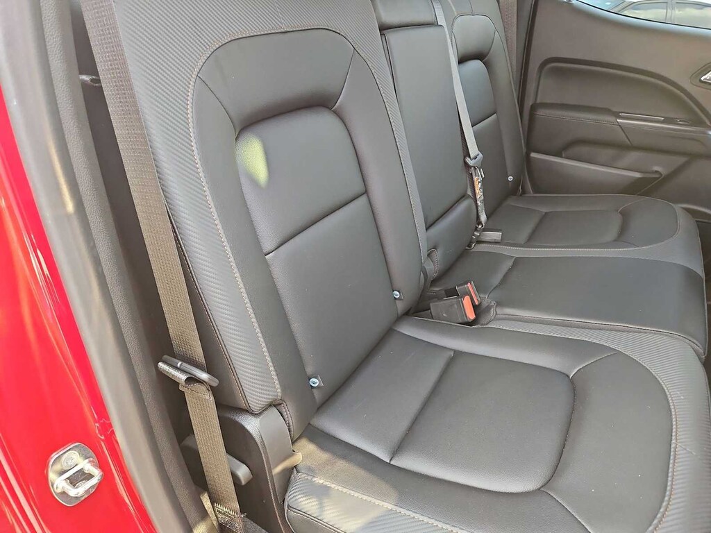 CARFAX One-Owner. Clean CARFAX. Cayenne Red Tintcoat 4WD. This Canyon AT4 w/Leather is nicely equipped with Preferred Equipment Group 4SB (Hitch Guidance and Tow/Haul Mode), Trailering Package, 4WD, 3.42 Rear Axle Ratio, 4-Way Power Front Passenger Seat Adjuster, 4-Wheel Disc Brakes, 6 Speakers, 6-Speaker Audio System Feature, ABS brakes, Air Conditioning, Alloy wheels, AM/FM radio: SiriusXM with 360L, Apple CarPlay/Android Auto, Auto-dimming Rear-View mirror, Automatic temperature control, Black Spray-On Bedliner w/GMC Logo, Bumpers: body-color, Compass, Delay-off headlights, Driver 6-Way Power Seat Adjuster, Driver door bin, Driver Instrument Information Enhanced Display, Driver vanity mirror, Dual front impact airbags, Dual front side impact airbags, Electronic Stability Control, Exterior Parking Camera Rear, Front anti-roll bar, Front Bucket Seats, Front Center Armrest, Front fog lights, Front License Plate Kit, Front reading lights, Front wheel independent suspension, Fully automatic headlights, HD Radio, Heated door mirrors, Heated Driver & Front Passenger Seats, Heated front seats, Heated Steering Wheel, Heated steering wheel, Illuminated entry, Leather-Appointed Seat Trim, Low tire pressure warning, Occupant sensing airbag, Outside temperature display, Overhead airbag, Overhead console, Panic alarm, Passenger door bin, Passenger vanity mirror, Power door mirrors, Power Driver Lumbar Control Seat Adjuster, Power driver seat, Power Passenger Lumbar Control Seat Adjuster, Power passenger seat, Power steering, Power windows, Premium audio system: GMC Infotainment System, Radio data system, Radio: AM/FM w/8 Diagonal Multi-Touch Display, Rear reading lights, Rear seat center armrest, Rear step bumper, Rear window defroster, Remote keyless entry, Security system, SiriusXM Radio, Speed control, Speed-sensing steering, Steering wheel mounted audio controls, Tachometer, Telescoping steering wheel, Tilt steering wheel, Traction control, Trip computer, Variably intermittent wipers, and Wheels: 17 x 8 Dark Argent Metallic. Price does not include licensing costs, registration fees, taxes and dealer doc fee of $899.50 which are to be paid by the consumer. Mileage is EPA Estimated.